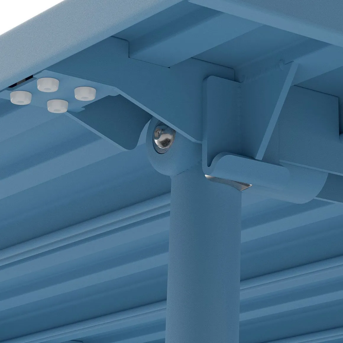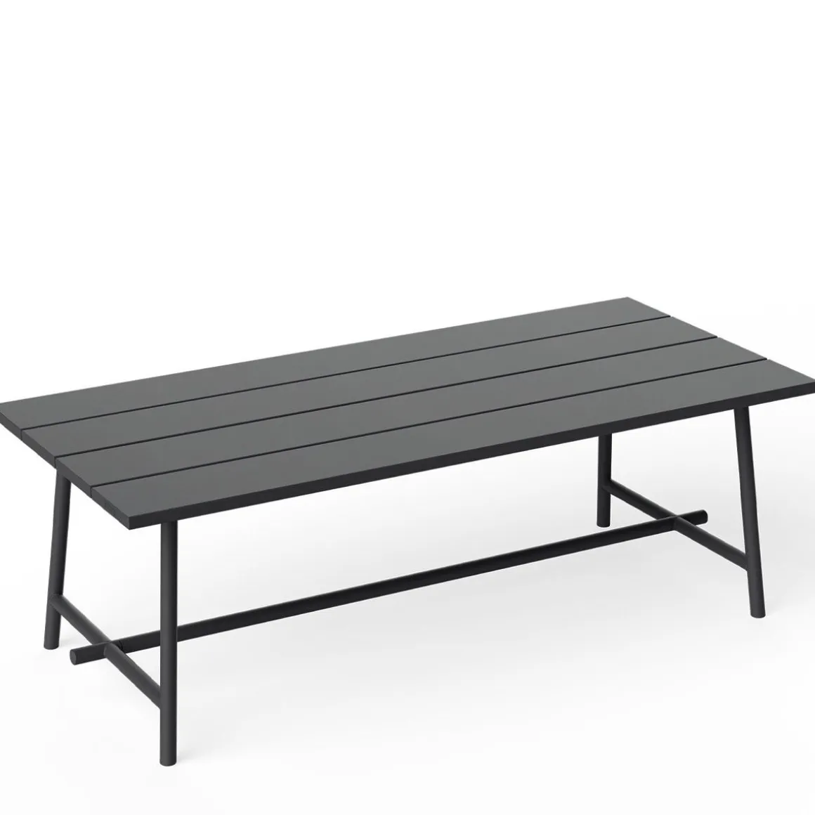 Fred’s Table est la grande pièce maîtresse de la collection. Et par « grande », nous voulons dire vraiment grande, puisqu’elle mesure 2,20 m. de long sur 1 m. de large. Fred’s Table peut facilement accueillir six personnes. Tu peux aussi ajouter deux chaises aux extrémités de la table si deux autres amis sont de la partie. Il ne manque plus que les boissons et un bon repas pour profiter d’une longue soirée ! Fred’s Table semble familière, mais elle est à la fois moderne, robuste et intelligente. Les lattes du plateau semblent solides mais sont constituées de profilés spéciaux en aluminium, ce qui signifie qu’elles sont pour la plupart creuses. Cela en fait une table incroyablement robuste, mais suffisamment légère pour être soulevée. Les pieds ronds en aluminium maintiennent cette table d’extérieur 6 places fermement au sol. Elle est également compacte car il te suffira de plier les pieds sous la table pour la ranger tout l’hiver dans ton abri de jardin. Tu préfères la laisser dehors ? Pas de problème ! Fred’s Table est une table d’extérieur résistante aux intempéries. Autre fonctionnalité astucieuse : l’eau de pluie s’écoule entre les lattes, tu n’auras donc pas d’eau sur la table. Fred a pensé absolument à tout.