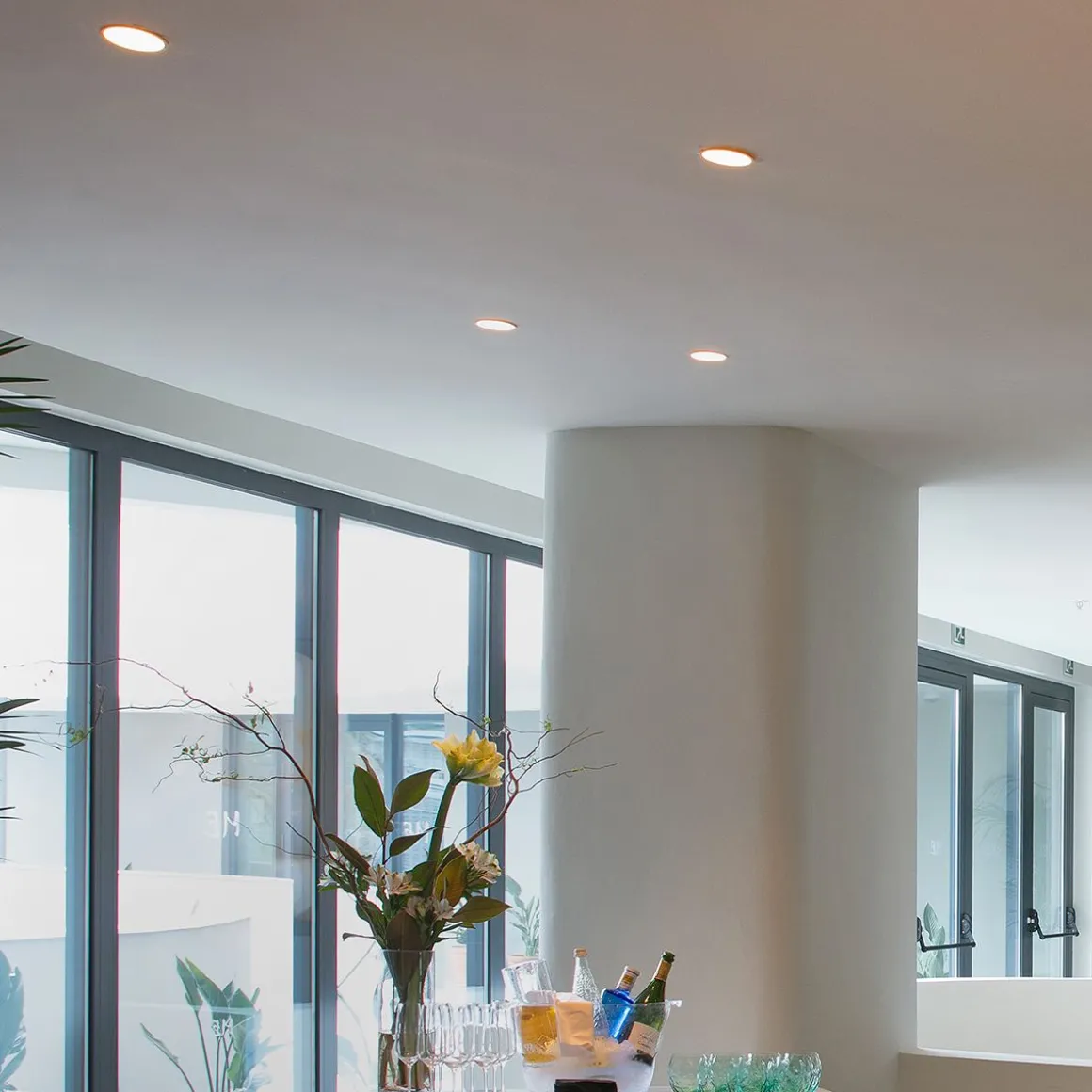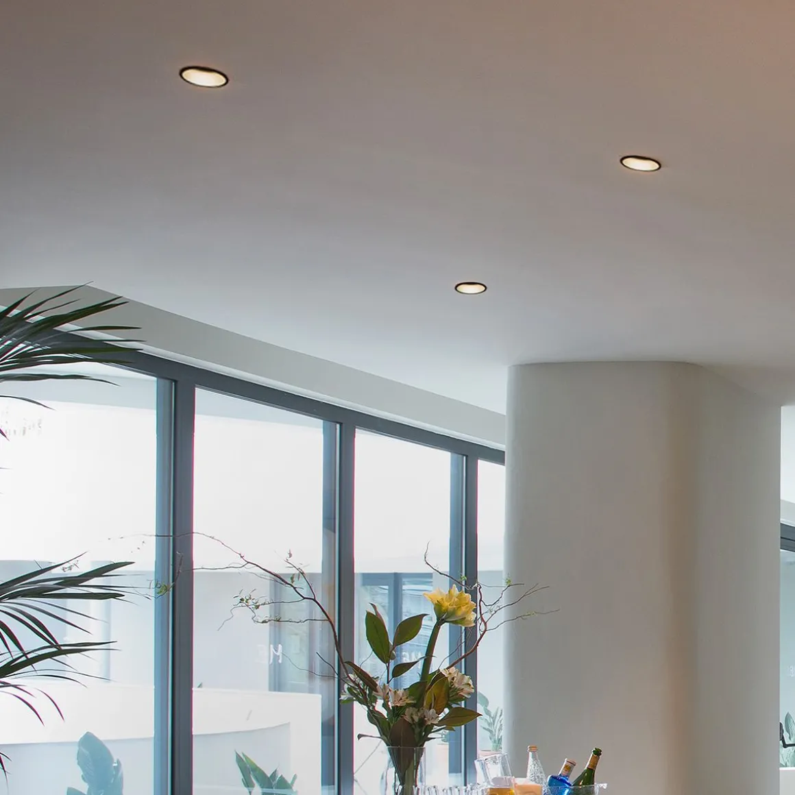Luminaire encastrable ronde en aluminium injecté, facile à installer, et conçu pour éclairer les espaces commerciaux. La source lumineuse est une ampoule GU10 max 50W non comprise.