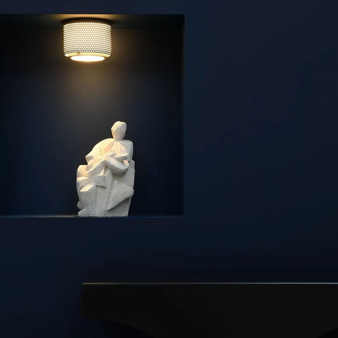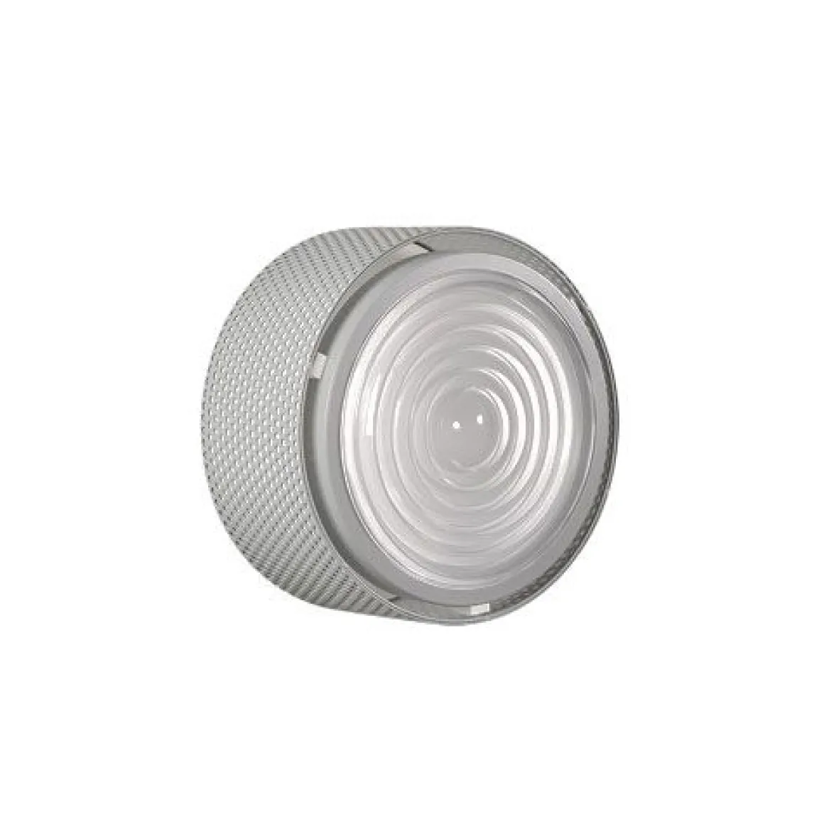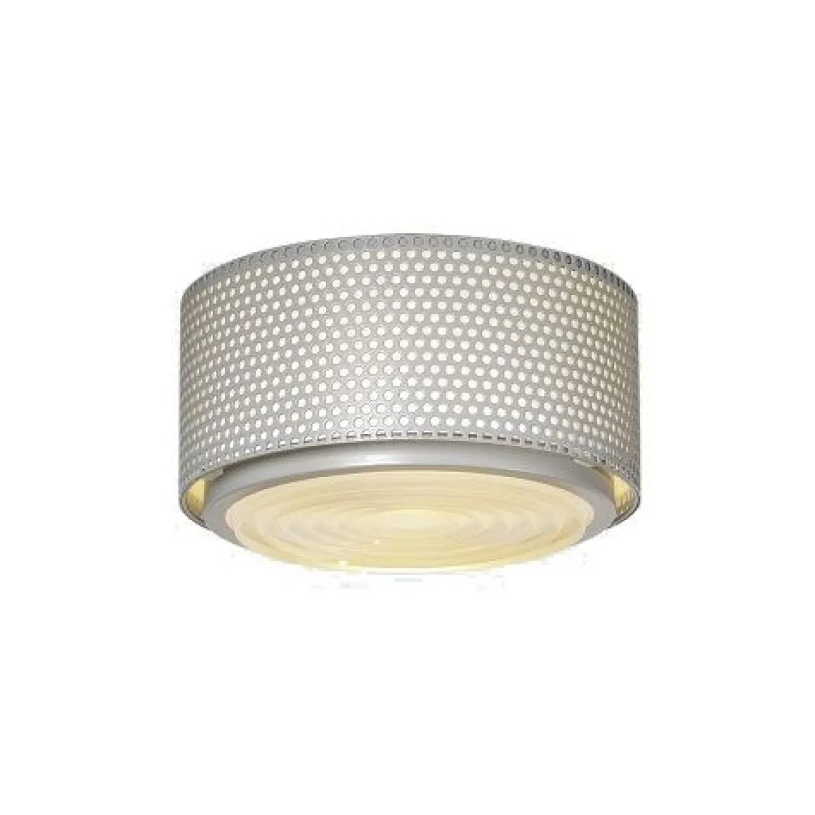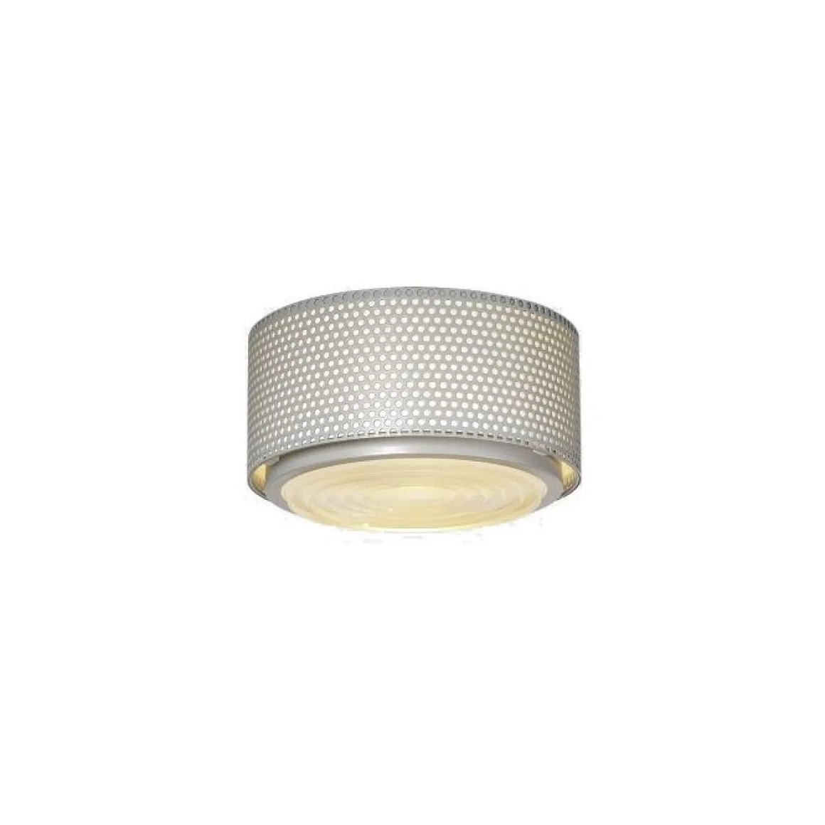 Matériaux : métal perforé noir, blanc ou gris, lentille de Fresnel en verre