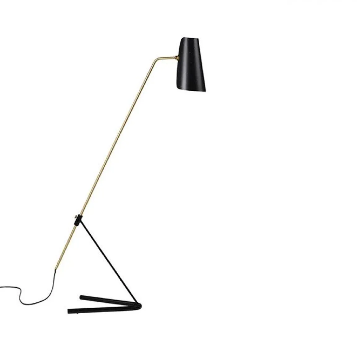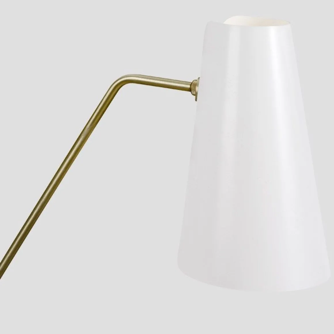 Matériaux : année 1951, pour utilisation intérieure, pied acier noir, laiton verni brossé, abat-jour aluminum blanc