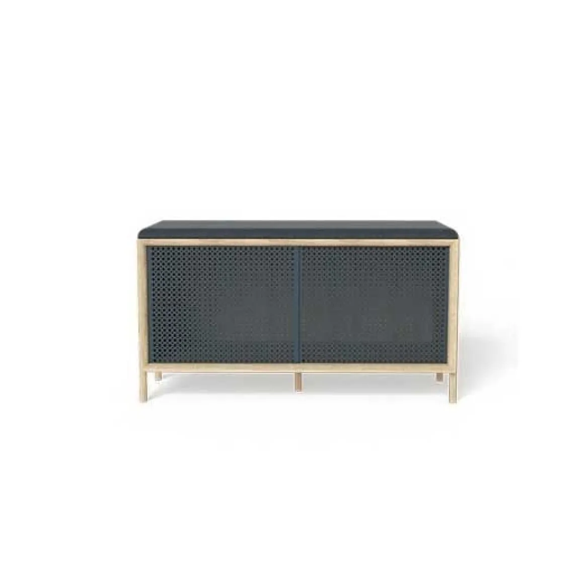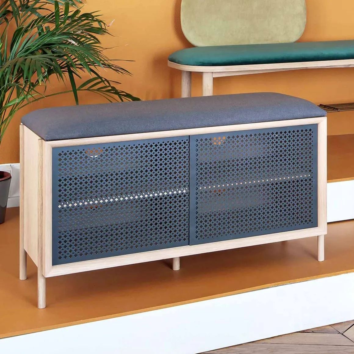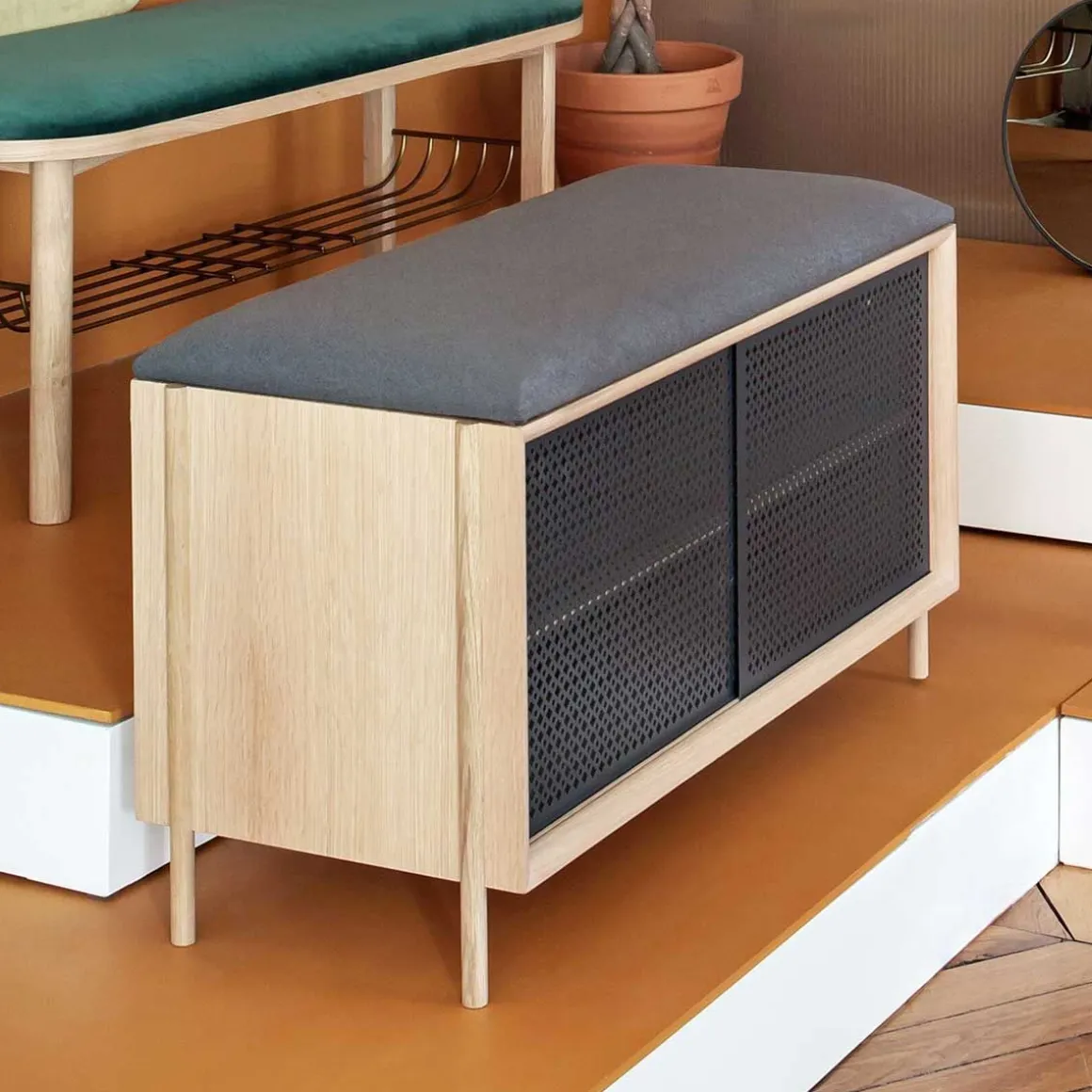 Pensé par Mathieu Galard, directeur artistique d’HARTÔ, le banc d’entrée GABIN vient enrichir le catalogue HARTÔ d’une toute nouvelle typologie. A l’image des pièces de la collection du même nom, il est empreint de modernité. Le cannage de ses portes, en écho à la répétition des motifs des années 60, devient le fondement du mobilier. Comme toujours, le design de la structure a été pensé avec simplicité et rondeur. Il mêle l’usage à l’émotion. Livré avec un coussin d’assise, le gabarit de Gabin lui permet d’apporter sa touche créative en s’adaptant à tous types d’entrées. Vous pourrez y déposer un sac, vous assoir, ou y ranger vos chaussures….