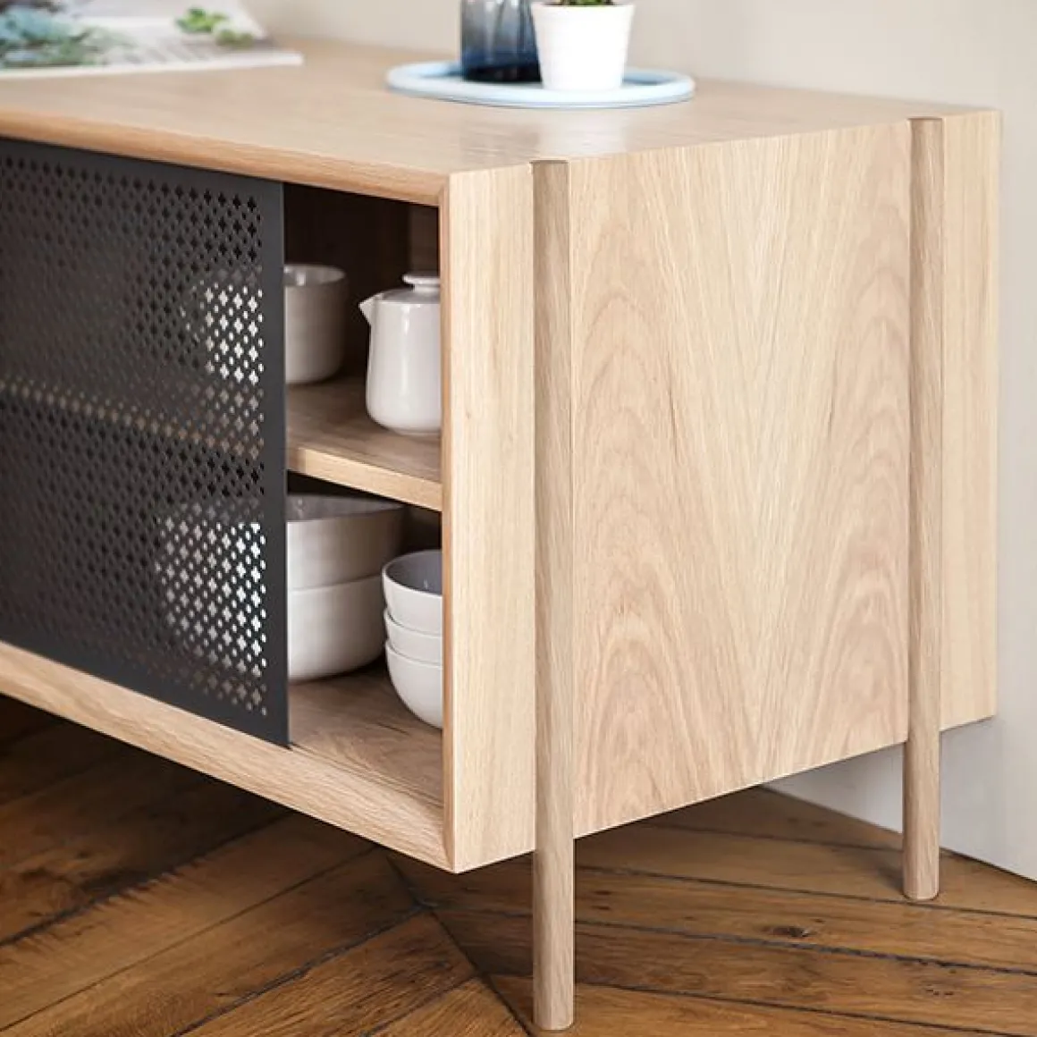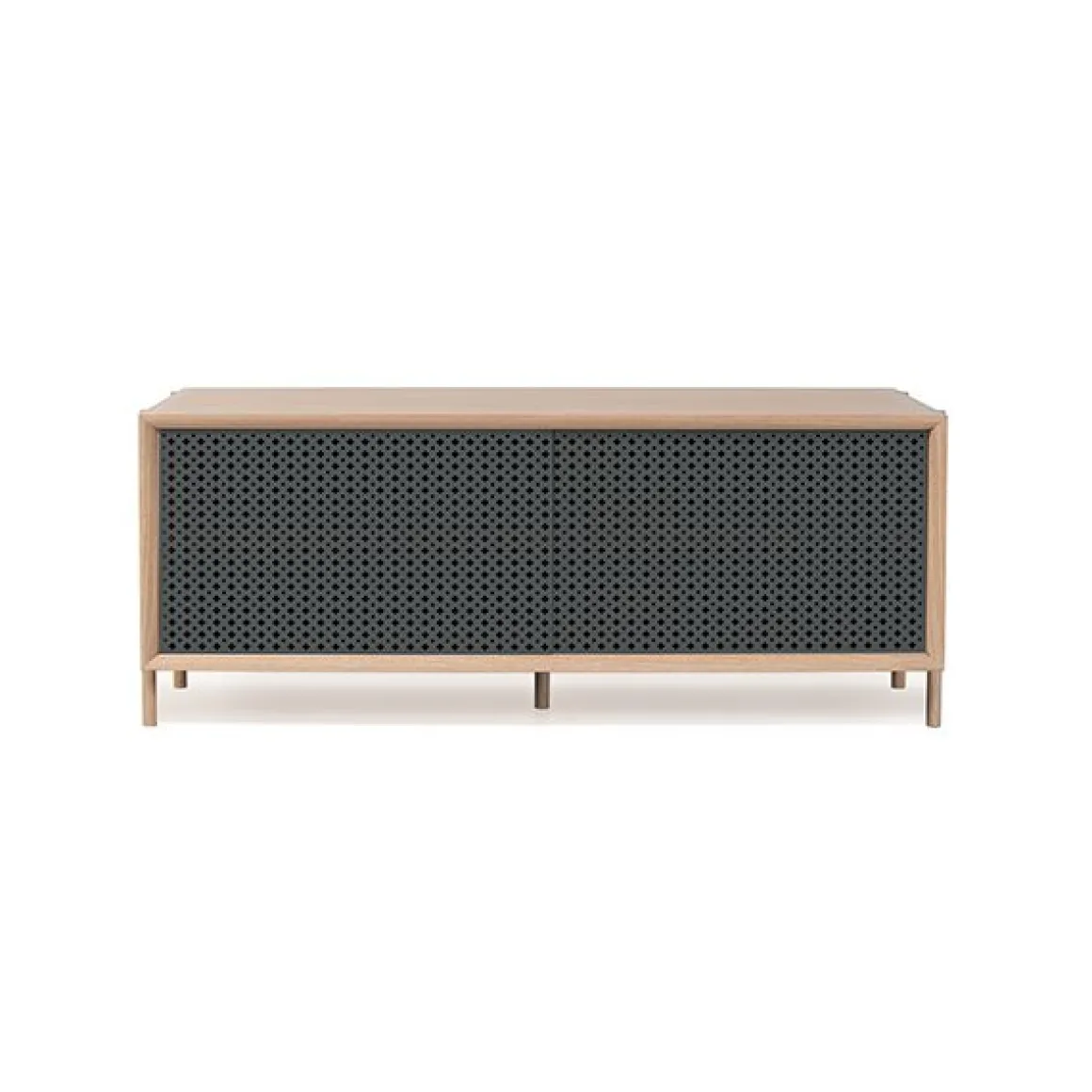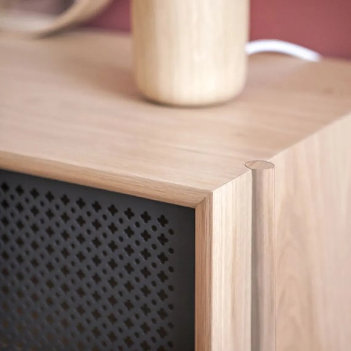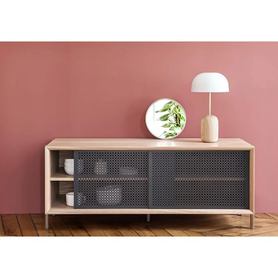 Gabin est une pièce unique par son style et son originalité tout en gardant une simplicité étonnante par ses lignes minimalistes mais ses finitions innatendues. Rappelant les assises anciennes de nos ainés, le cannage est une technique de tissage sur châssis à l’aide de canne de rotin. Gabin est, après Marius, le deuxième buffet bas de la collection HARTÔ. Il se démarque principalement par le motif inspiré du cannage, ainsi que par l’association bois et métal. Portes disponibles en quatre coloris : gris clair, rose pomelo, bleu gris et gris ardoise.