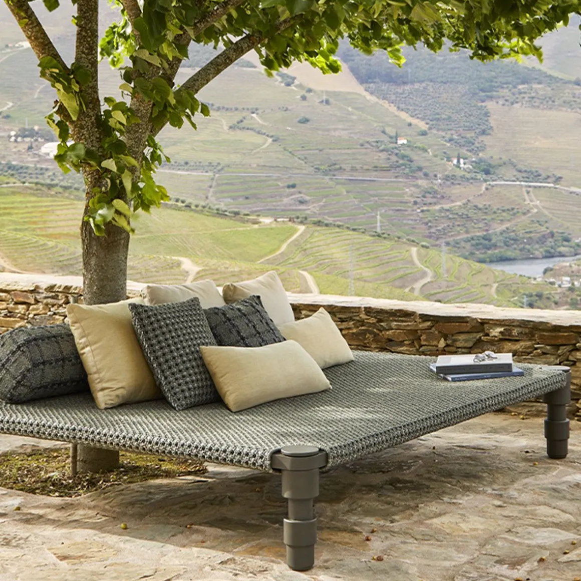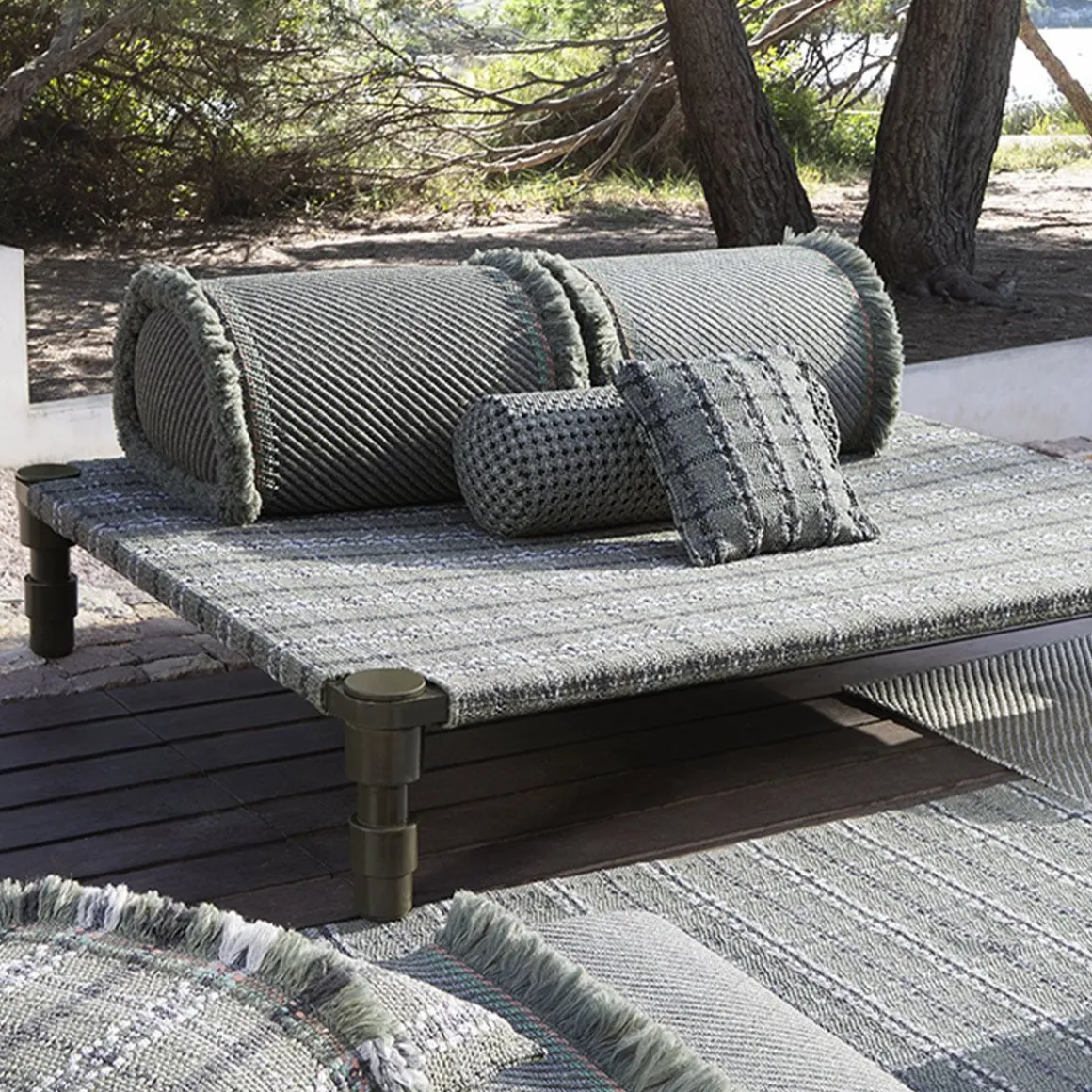 Cette gamme de lit fait partie de la collection Garden Layers, il s’agit de coussins, rulos, tables, tapis d’extérieur et d’intérieur.