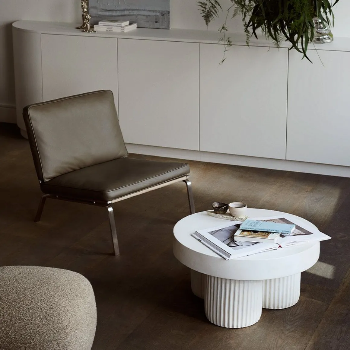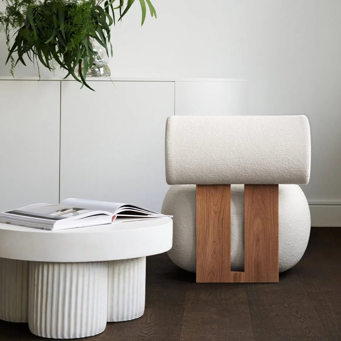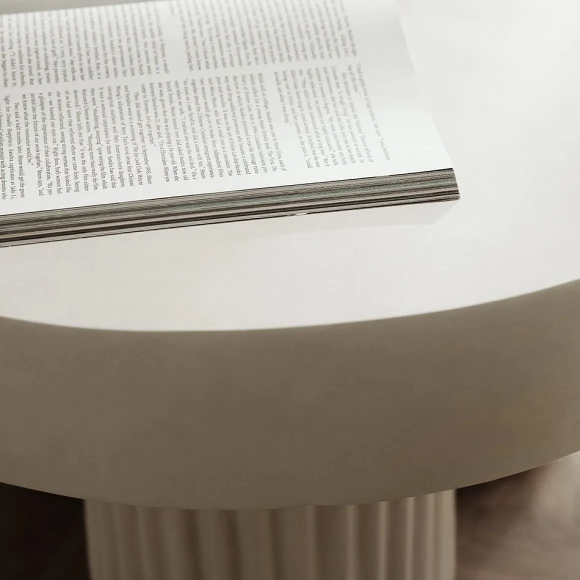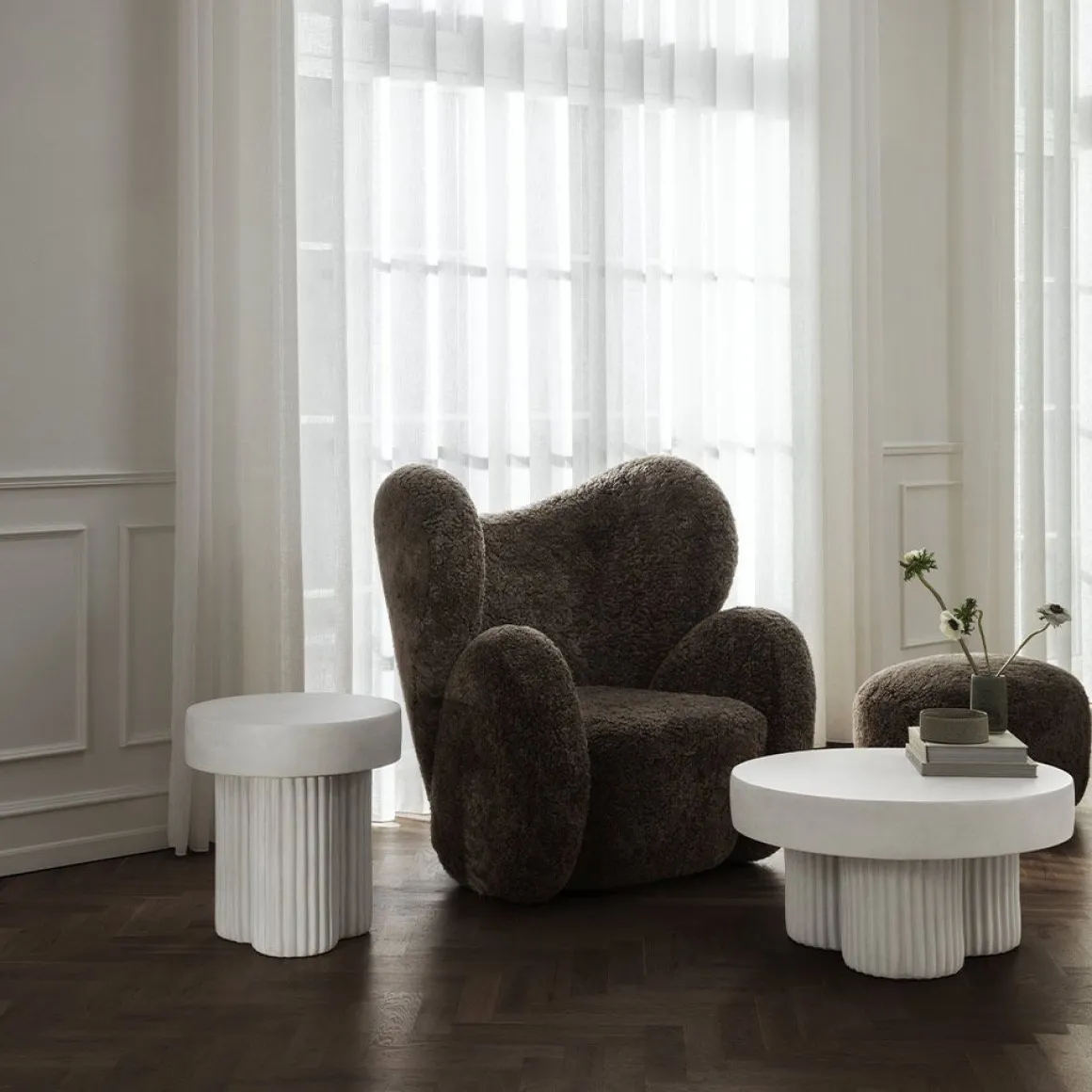 La table Gear, avec ses piliers robustes et son plateau épais, se dresse presque comme une modeste sculpture brutaliste. Gear s’inspire du mouvement architectural brutaliste des années 1950, caractérisé par ses formes géométriques et ses surfaces en béton brut. La série réinvente l’architecture brutaliste en meubles, mais vise à adoucir son expression dure, autrement perçue. Par exemple, les rainures dans les pieds de la table créent des effets d’ombre en fonction de l’éclairage qui les frappe, ajoutant ainsi un élément dynamique. Les équipements sont fabriqués à partir de béton brut comme matériau principal, tout comme les bâtiments brutalistes l’étaient il y a des décennies. Cependant, pour adoucir l’expression dure du matériau, le béton a été coloré pour ajouter des nuances et insuffler de la tactilité au design. La table Gear est fabriquée à la main selon un processus de fabrication en 9 étapes, mettant en valeur la précision d’un savoir-faire artisanal. Lors des dernières étapes, chaque table est peinte à la main, ce qui en fait une pièce unique dont l’expression varie. Les couleurs, dont Chalk et Earth, présentent un blanc crayeux et une nuance café, donnant au béton une teinte rougeâtre chaude. Ces nuances plus chaudes tempèrent l’expression, facilitant l’association avec des matériaux plus doux comme le bois et les tissus d’ameublement.