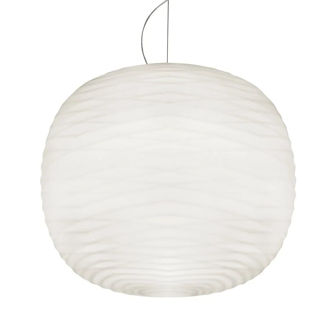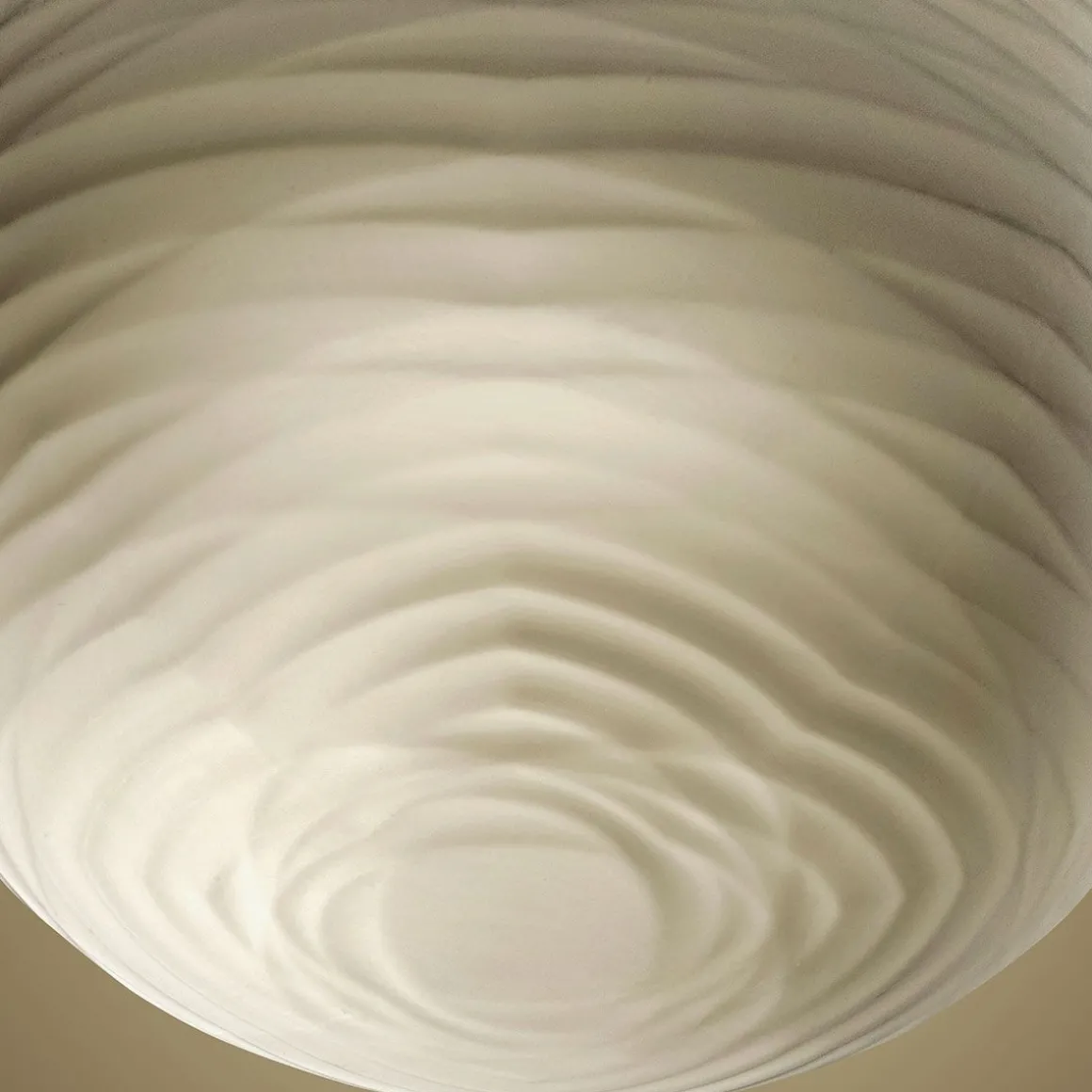 Une vibration fluide sur le verre. La suspension Gem est un objet qui séduit d’emblée : dès le premier regard, on est attiré par le caractère précieux du matériau et le savoir-faire de la fabrication artisanale. De par l’irrégularité de sa surface vitreuse caractérisée par des ondulations et des reliefs irréguliers, la lampe offre un impact visuel unique, même lorsqu’elle est éteinte, et crée, lorsqu’elle est allumée, de magnifiques effets lumineux.