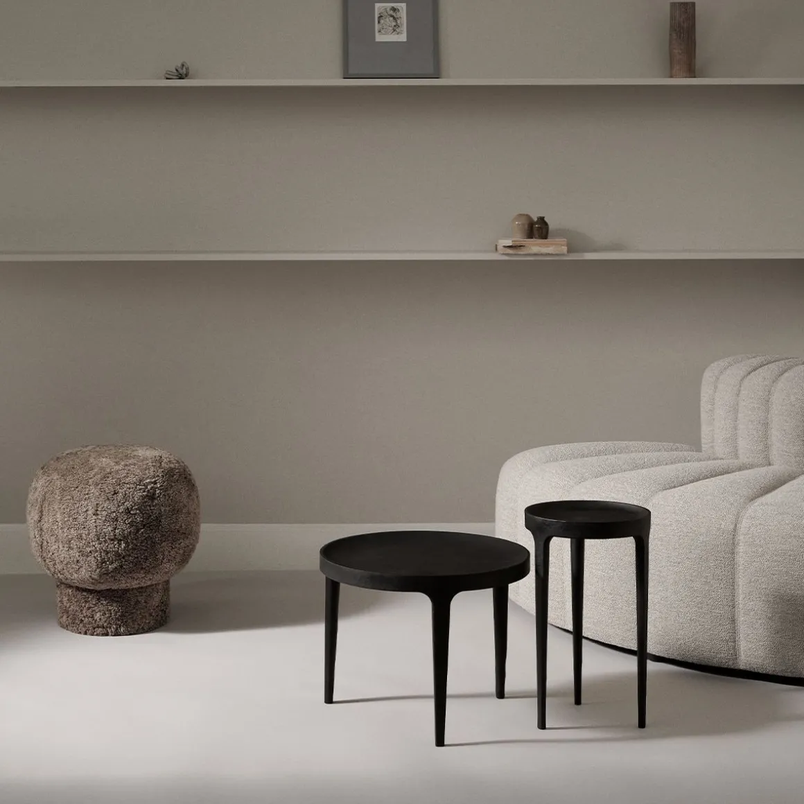 Ghost est une collection de tables solides en fonte d’aluminium. Les tables élégantes sont dotées de trois pieds pointus et d’un plateau concave dont la courbe met joliment en valeur les qualités du matériau. Les tables ne sont pas polies une fois retirées du moule, ce qui leur confère une texture de surface unique et rugueuse. Cet aluminium brut est enduit de poudre puis peint à la main, ce qui lui confère une surface belle et diversifiée, qui alterne entre une finition mate et réfléchissante.