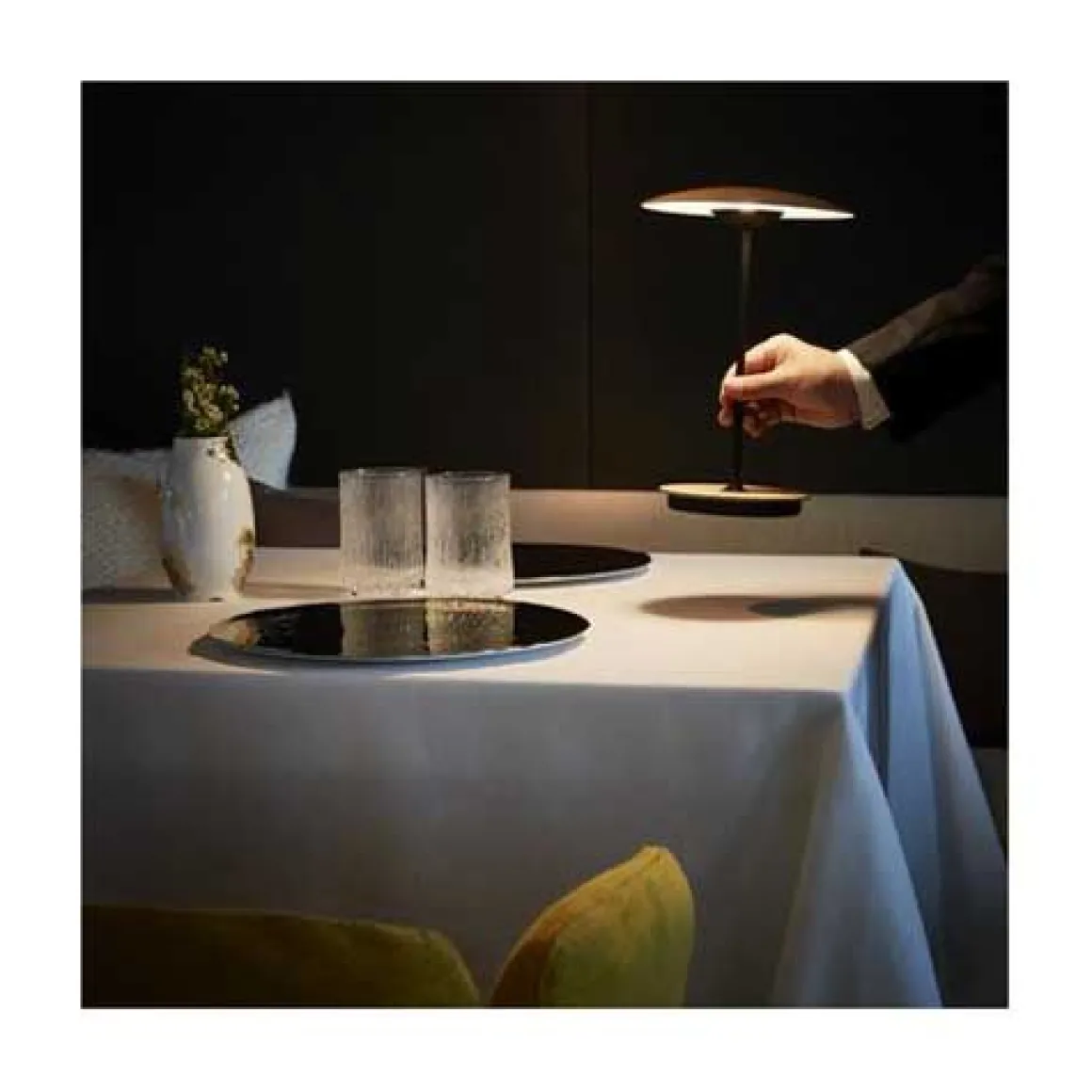 Ginger est une lampe de table de la marque Marset conçu par Joan Gaspar. Le bois est un excellent allié d’un éclairage chaleureux. C’est un matériau difficile à mouler, un défi que la collection Ginger résout résolument. La combinaison de feuilles de bois, de papier et de résines pressées ensemble sous haute pression permet d’obtenir un stratifié presque entièrement plat qui éclaire discrètement les espaces avec une lumière indirecte. La collection Ginger a été élargie au fil du temps pour fournir des solutions à différents besoins d’éclairage, et est disponible en diverses versions. Grâce à une batterie lithium-ion rechargeable, la nouvelle version de table portable de Ginger permet aux espaces d’être allumés indépendamment avec une liberté totale, et sans avoir besoin de fils.