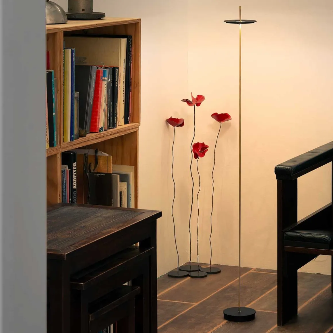 Giulietta BE se compose d’une tige mince – qui provient d’une base circulaire – et d’un cercle qui gravite autour, apparemment sans aucun support. La présence du cercle qui cache la source lumineuse est un élément distinctif de cette lampe, qui fait partie de la collection « Giulietta ».