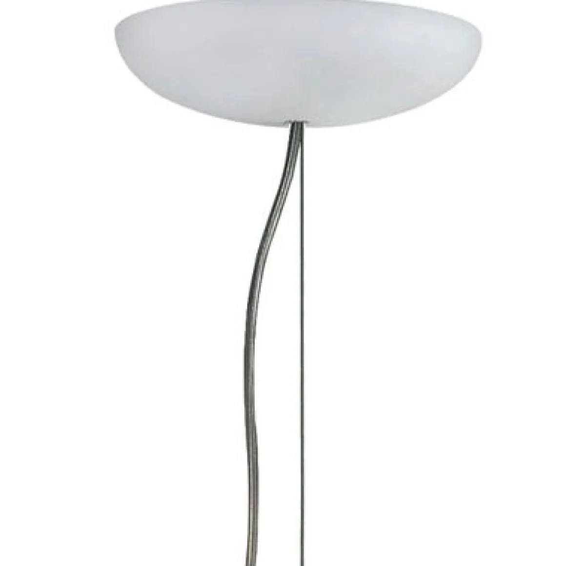 Matériaux : Diffuseur en verre opalin gainé, soufflé à la bouche, et acidifié, support diffuseur en polycarbonate transparent, câble en acier