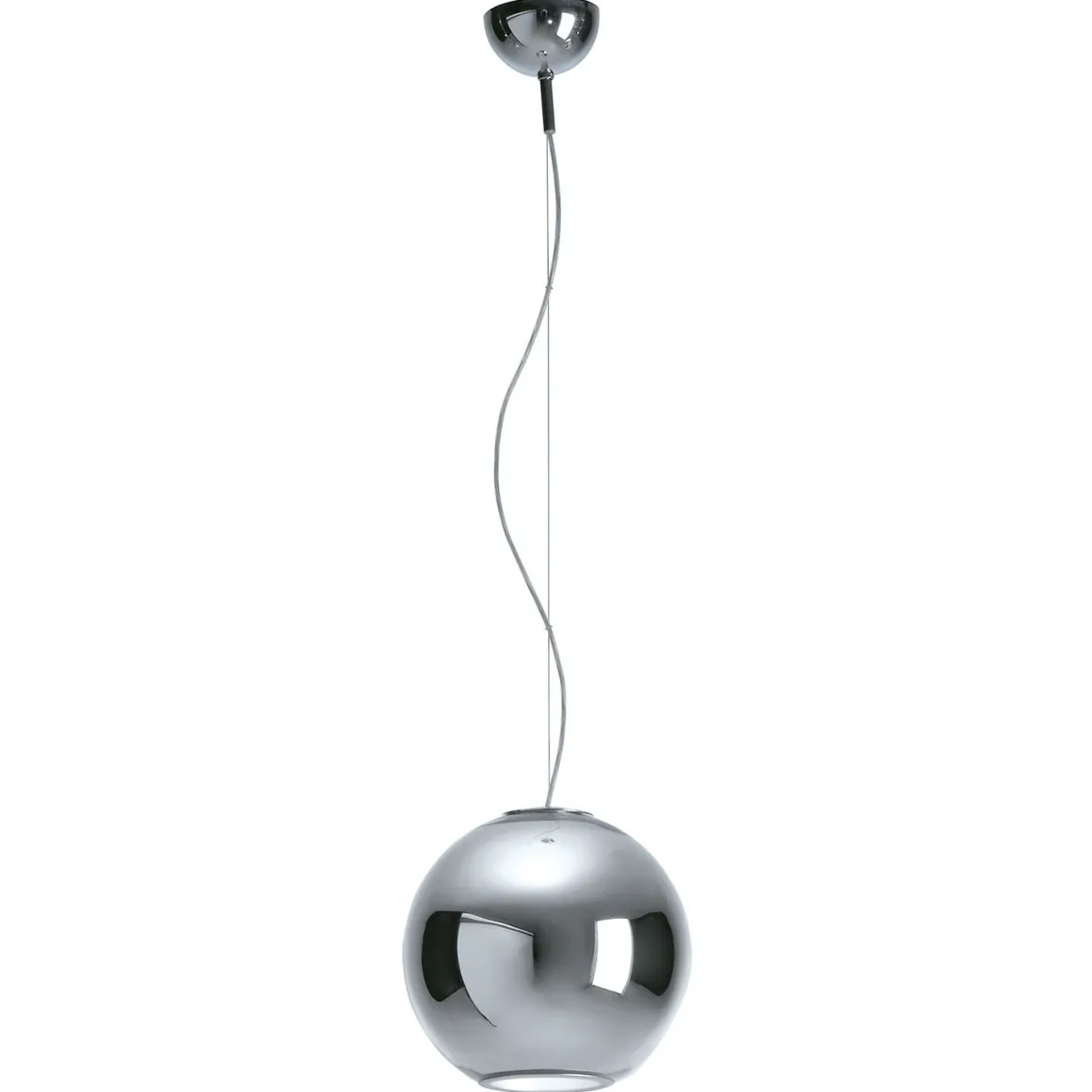 Suspension créé par Roberto Menghi en 1968. Globe en verre soufflé. Réflecteur en aluminium anodisé. Câble d’alimentation transparent. Disponible en 3 tailles.
