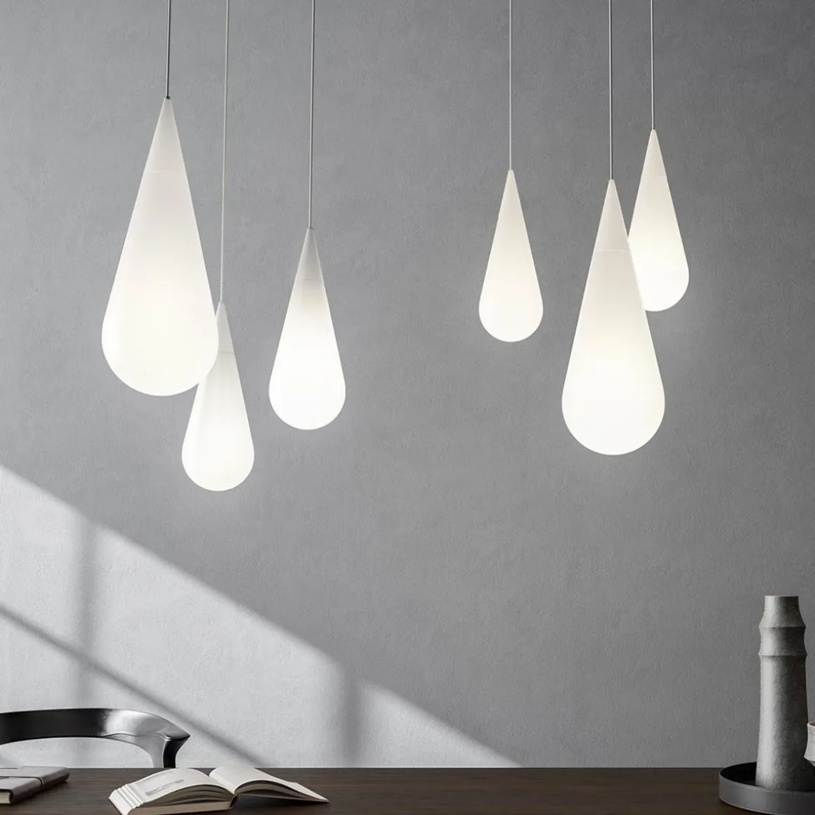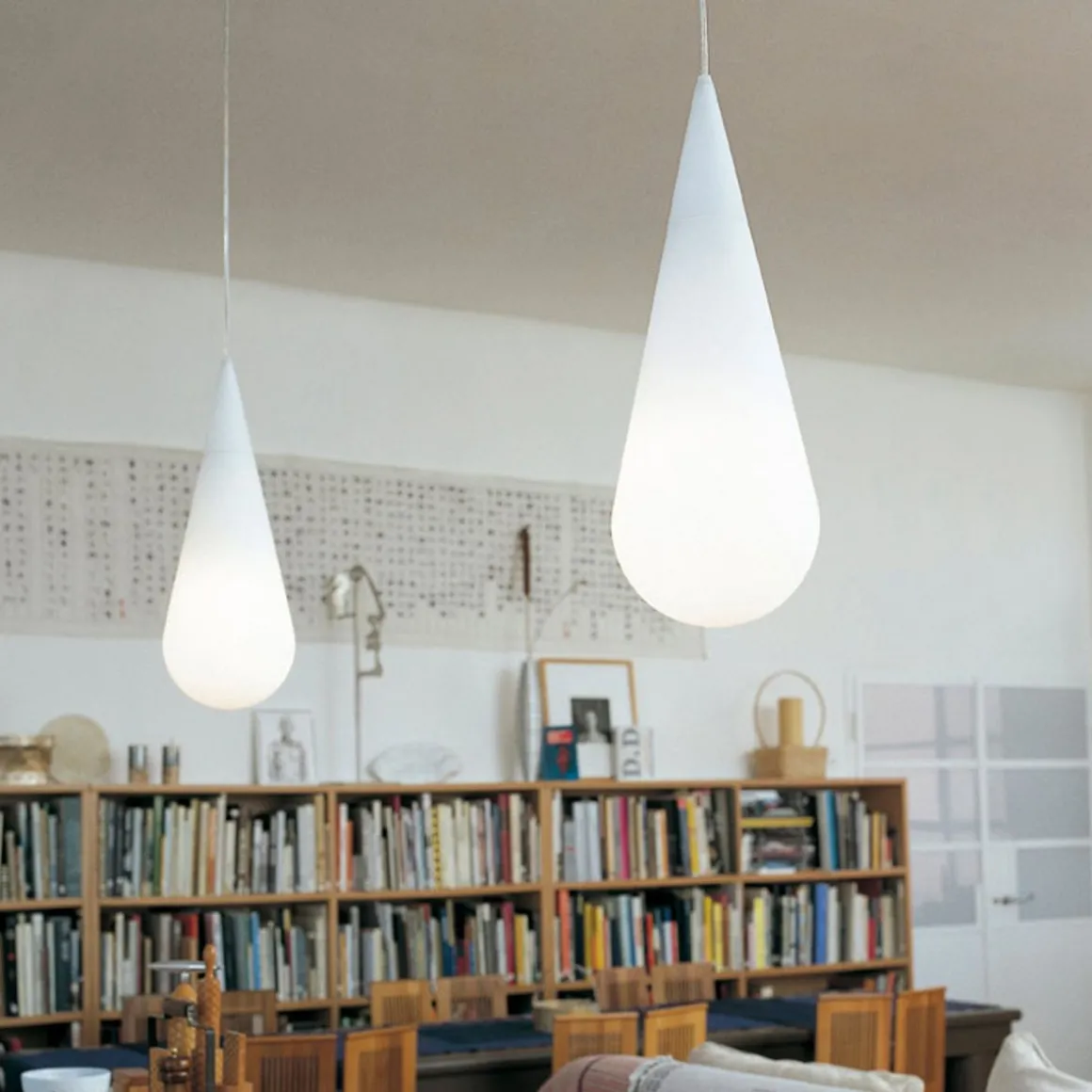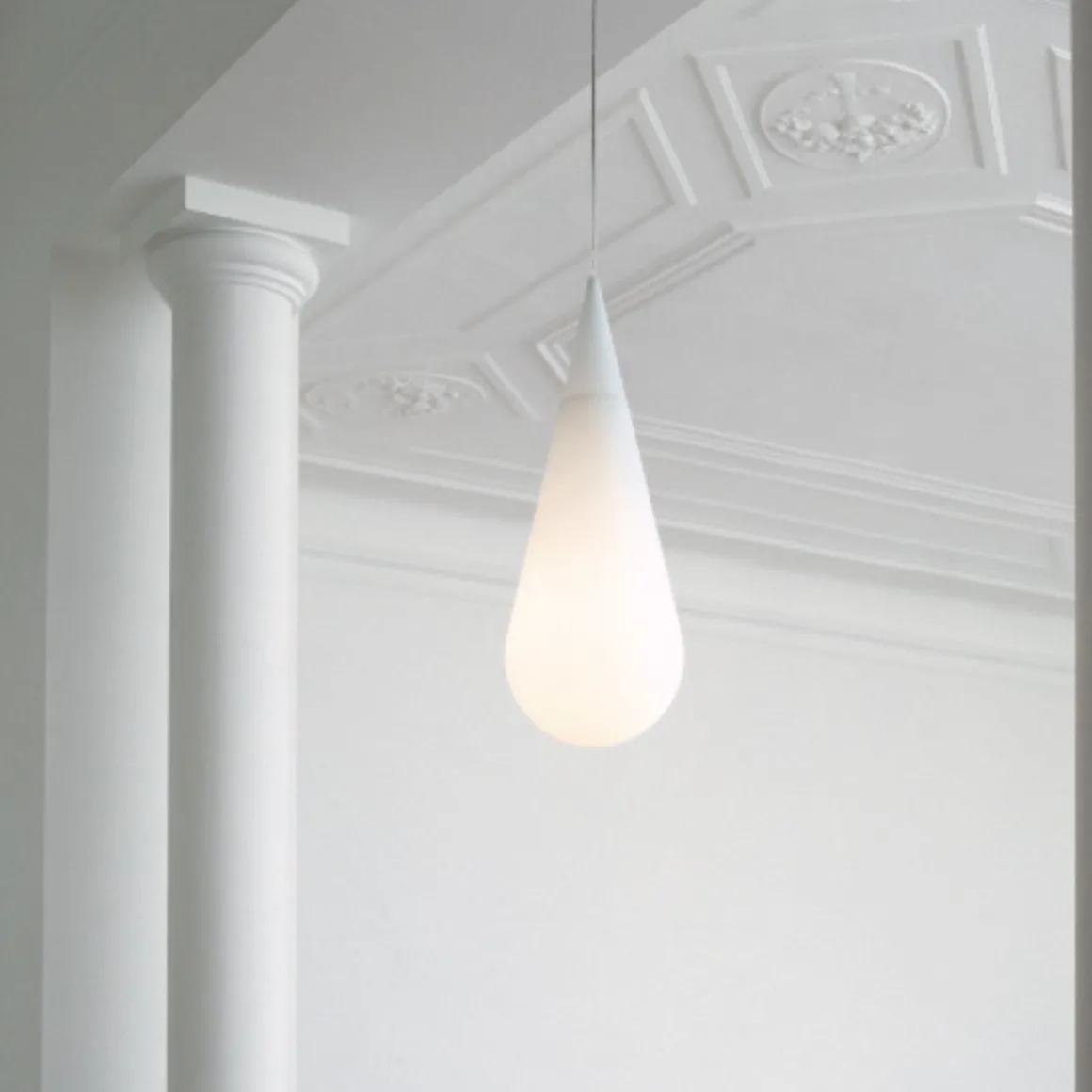 Goccia est une suspension qui diffuse une douche lumière. Sa forme est similaire à celle d’une goutte d’eau, un pendentif ou un bijou. C’est grâce à deux éléments en verre qui se chevauchent, qui maintiennent l’élégance et l’aspect compact de l’objet. La partie en forme de cône supérieur est dans la rosette, qui simule une réflexion en miroir sur le plafond. Goccia est entièrement réalisé en verre soufflé, et on peut soit avoir une texture brillant ou satiné. La structure intérieure est en métal chromé. Goccia est magnifique seul ou en grappes, il donnera caractère et originalité à tout type d’environnement.