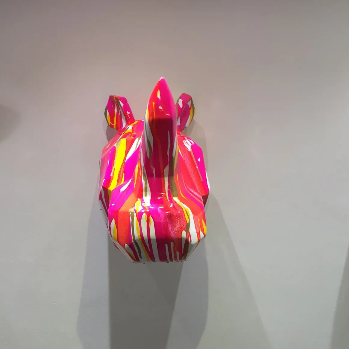 Grogny se distingue par ses finitions qui lui confèrent un impact visuel hors du commun. Qu’il soit proposé en laque monochrome (blanc pur, noir intense) pour un effet minimaliste, ou dans une finition Pop Art (peinture coulante et colorée, comme illustré), il devient un point focal immédiat. Qu’il soit seul ou en composition murale (par exemple, avec le cerf ‘Duffy’), ce trophée d’Artypopart, cet animal de la savane, ajoute une touche audacieuse et décalée à votre décoration. C’est l’union parfaite entre l’art de la sculpture, l’hommage à la nature et l’esprit avant-gardiste de SJ.