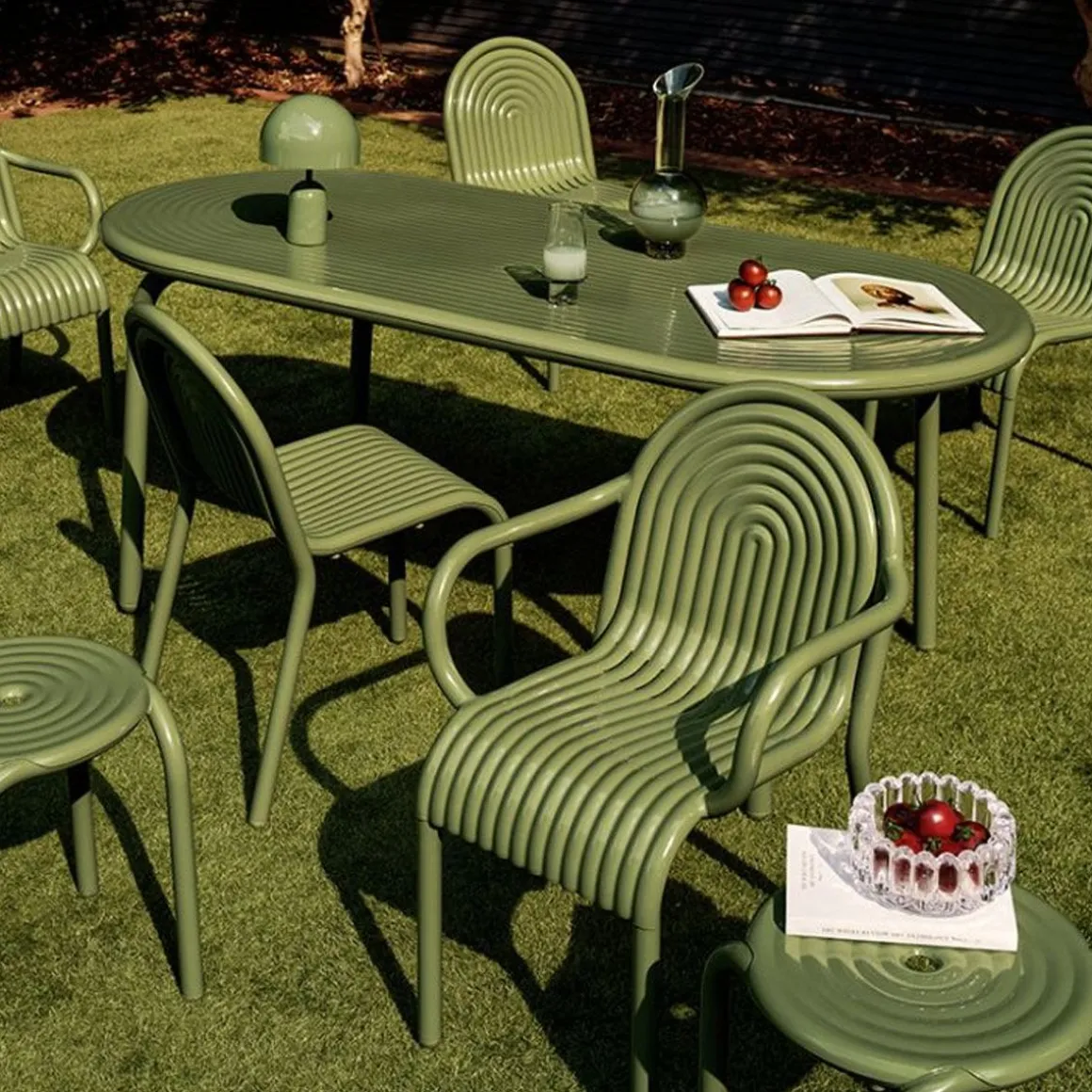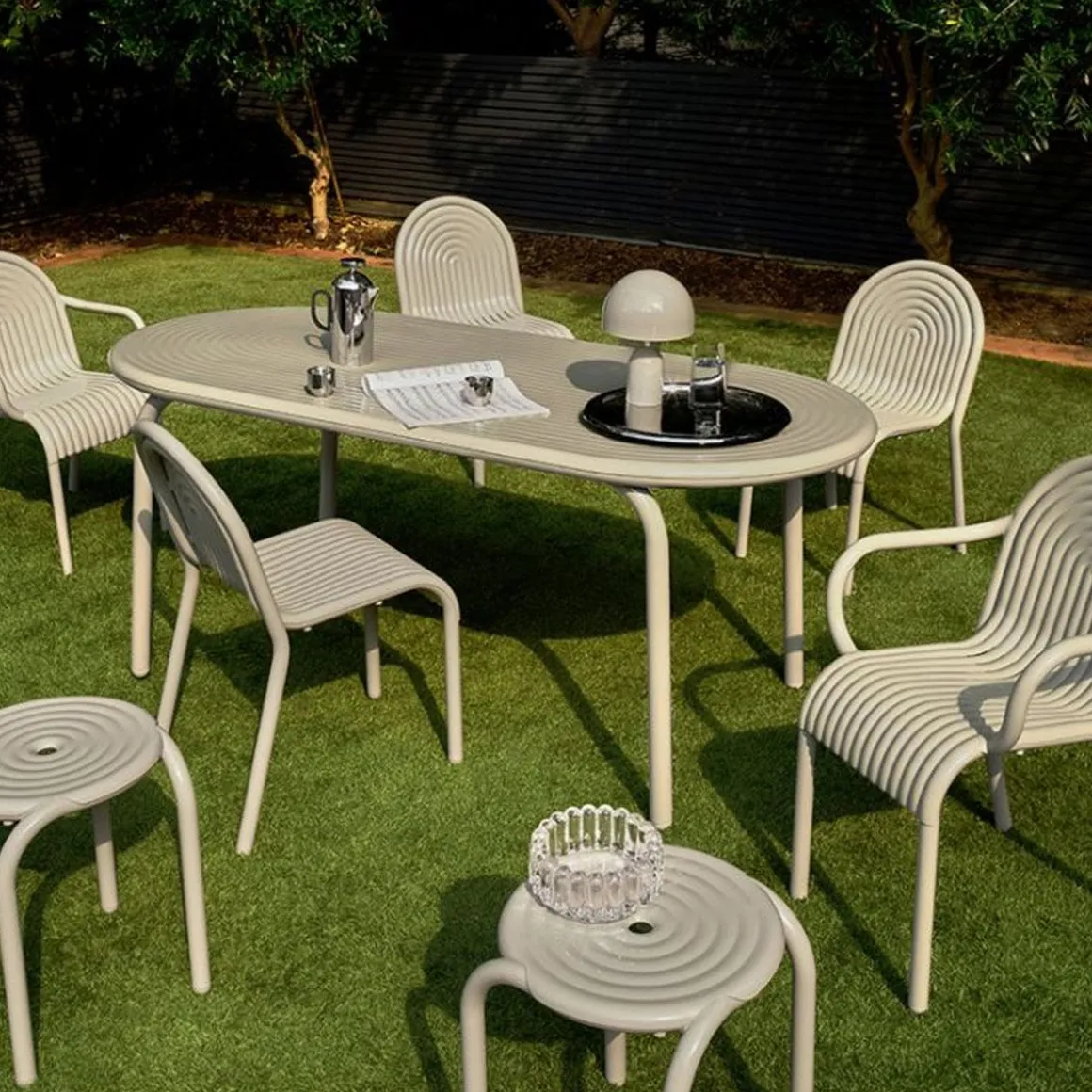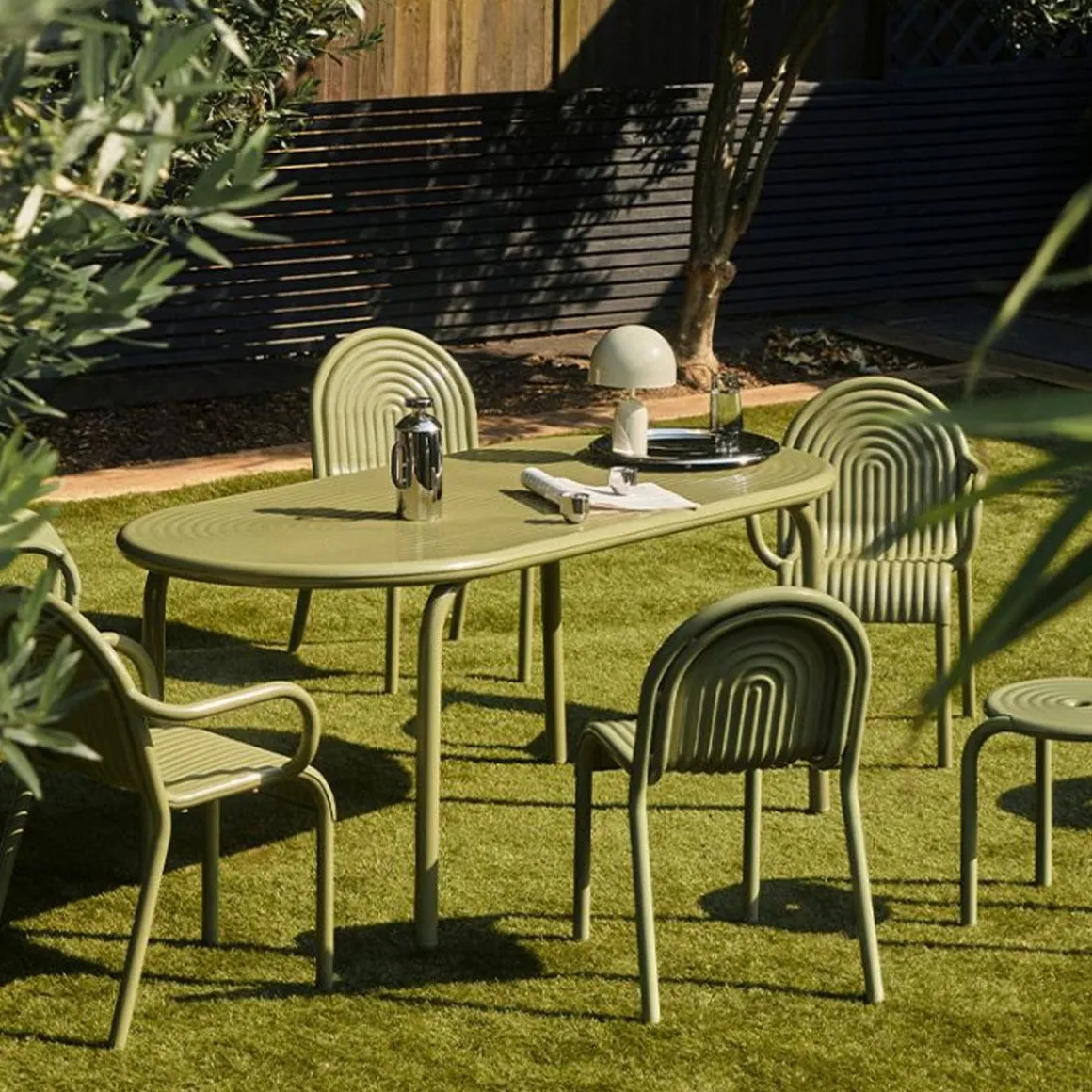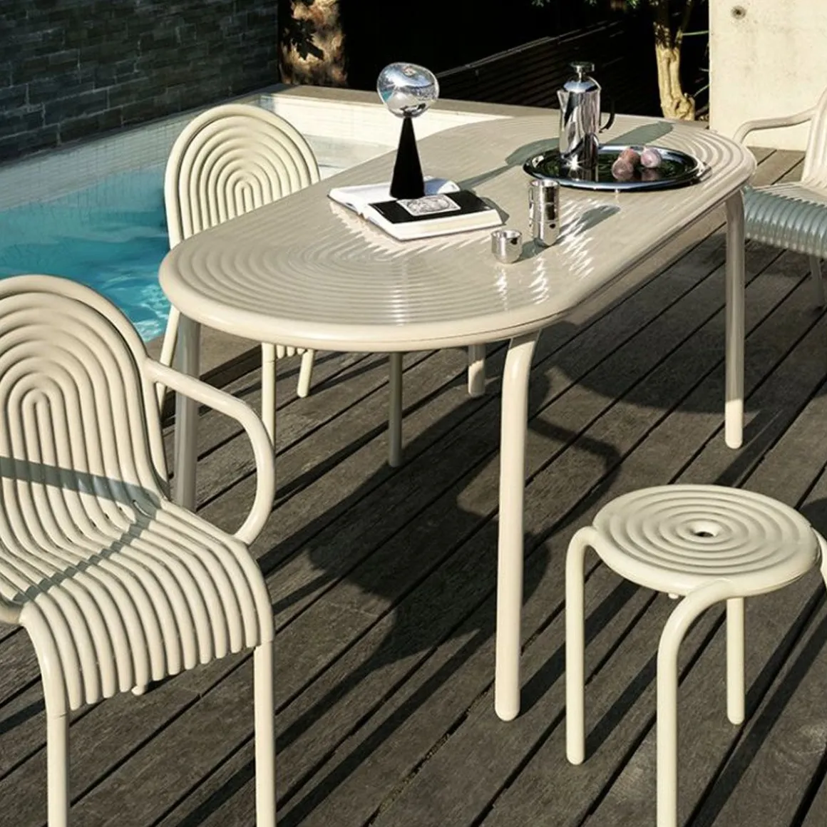 Groove de Tom Dixon. Découvrez la table ronde GROOVE, qui fait partie de la première collection d’extérieur de Tom Dixon. La table ronde GROOVE présente des arêtes surélevées de style art déco distinctives et est fabriquée en aluminium de qualité supérieure. Utilisant des techniques de fabrication de pointe pour une durabilité supérieure et dotée d’une finition en poudre de haute qualité, la table ronde GROOVE garantit une utilisation en extérieur et est à la fois sans solvant et sans COV. Développée à partir de plus d’une décennie de recherche, la collection GROOVE comprend des fauteuils, des chaises, des coussins, des tabourets et des tables.
