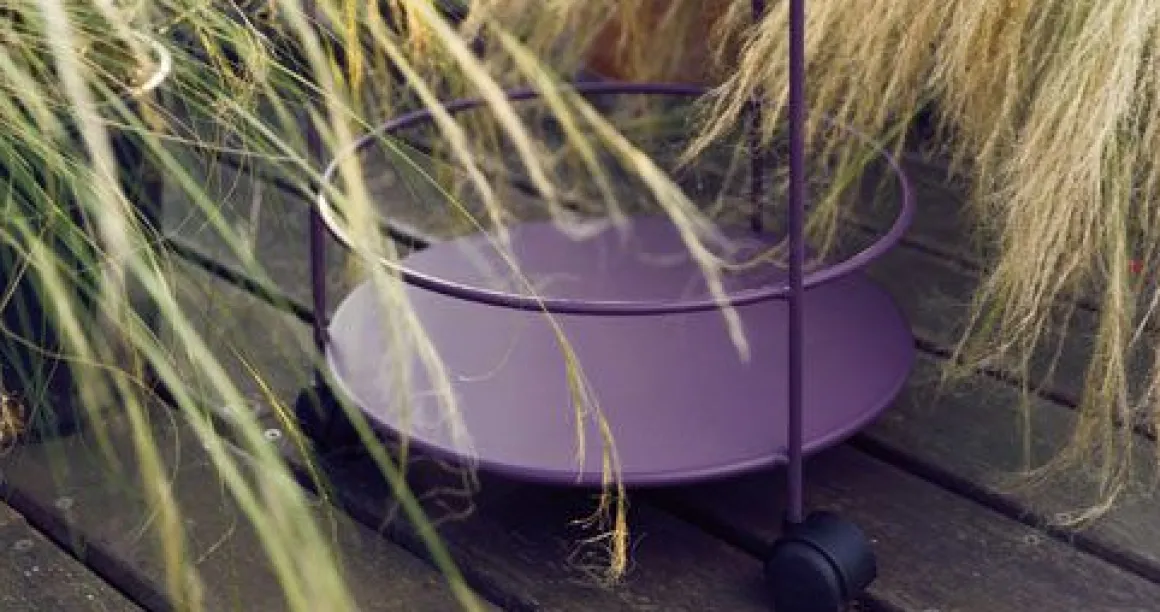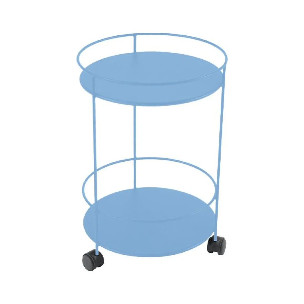 Guéridon à roulettes / Guinguette de Fermob. Ce guéridon à roulettes reprend un design sobre et élégant et s’associe parfaitement aux différentes collections du catalogue Fermob.Table d’appoint à roulettes, mini-bar, ce compagnon nomade sera d’une grande utilité à l’intérieur comme à l’extérieur ! On apprécie son double plateau plein particulièrement pratique, son esthétisme travaillé avec son fil acier et sa résistance importante face aux intempéries. Un meuble de jardin idéal ! Découvrez le même format de guéridon avec son plateau perforé, ainsi que le nuancier Fermob, qui saura vous conseiller en matière de combinaison de couleurs.
