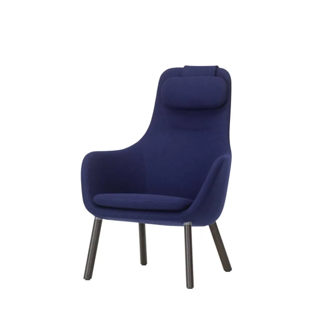 Le HAL Lounge Chair compact (2021) est la réinterprétation par Jasper Morrison du fauteuil à quatre pieds au rembourrage doux et dossier haut.