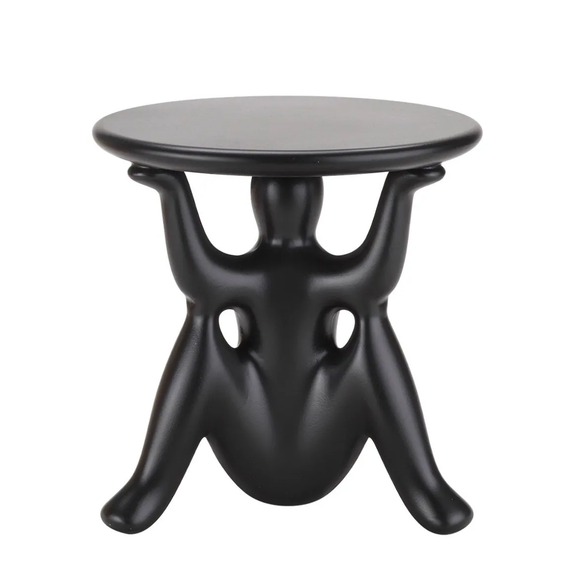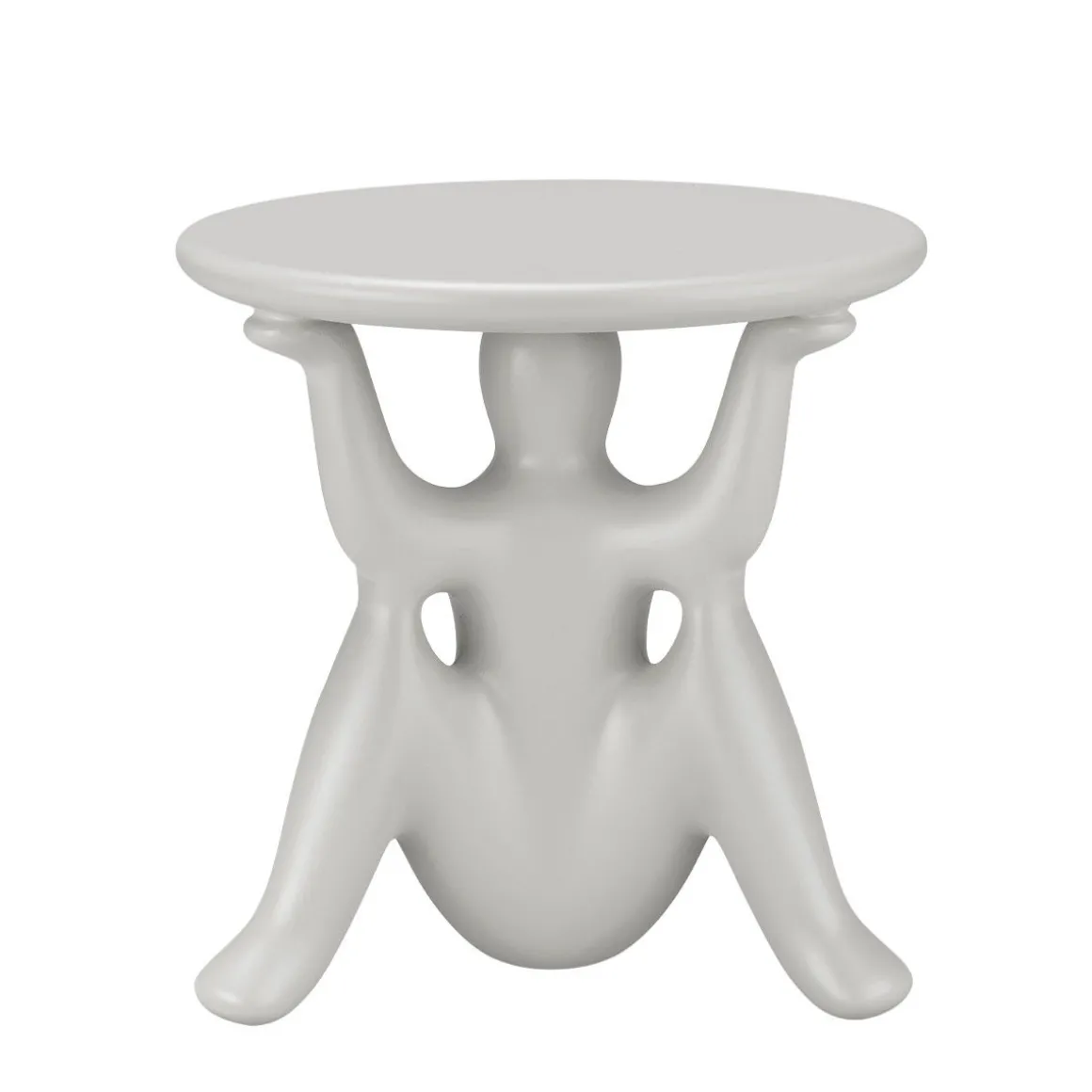 Helpyourself de Qeeboo par Philippe Starck. Qeeboo collabore pour la première fois avec le créateur de renommée mondiale Philippe Starck sur une collection de table et de table d’appoint. « Les Helpyourselfs sont une famille de charmants génies qui veillent au bonheur de la maison en portant les tables. » Ph.S. Ces génies à trois pieds et trois bras constituent la base d’un plateau de table en polyéthylène de 46,5 cm de diamètre moulé d’une seule pièce.