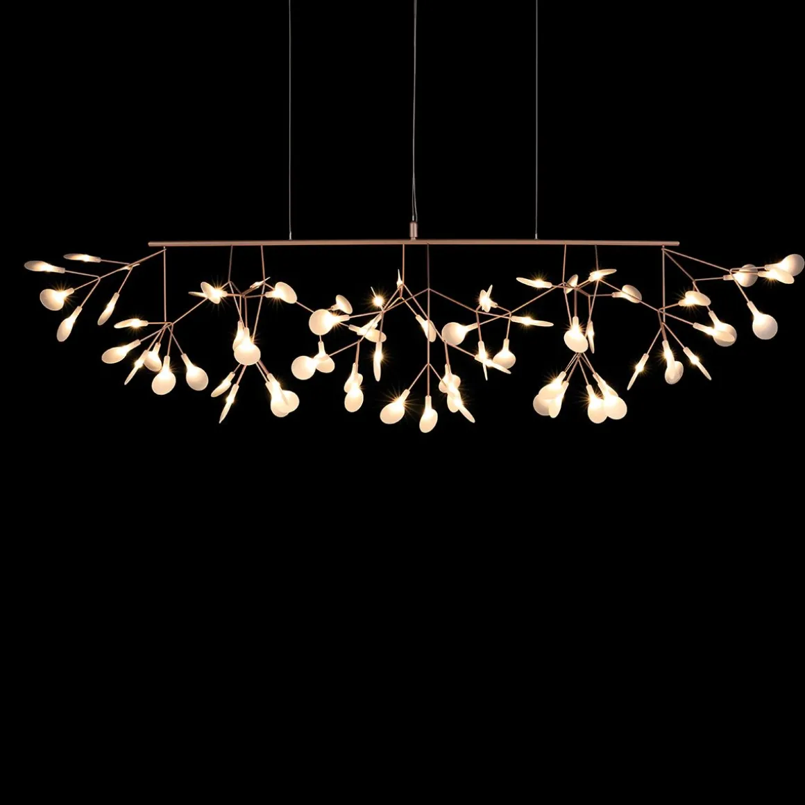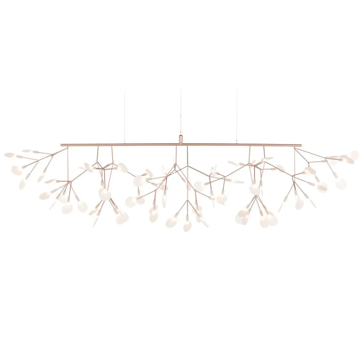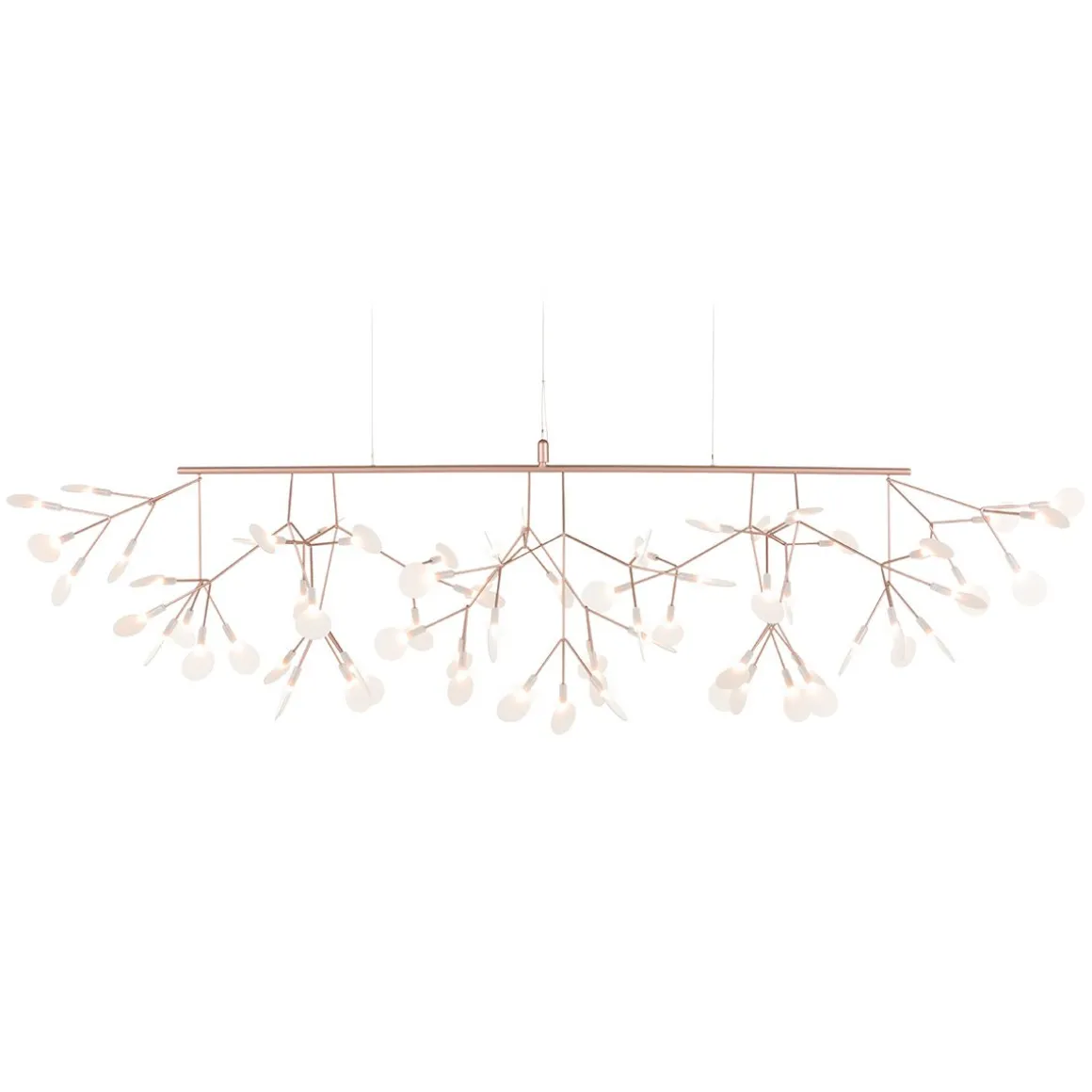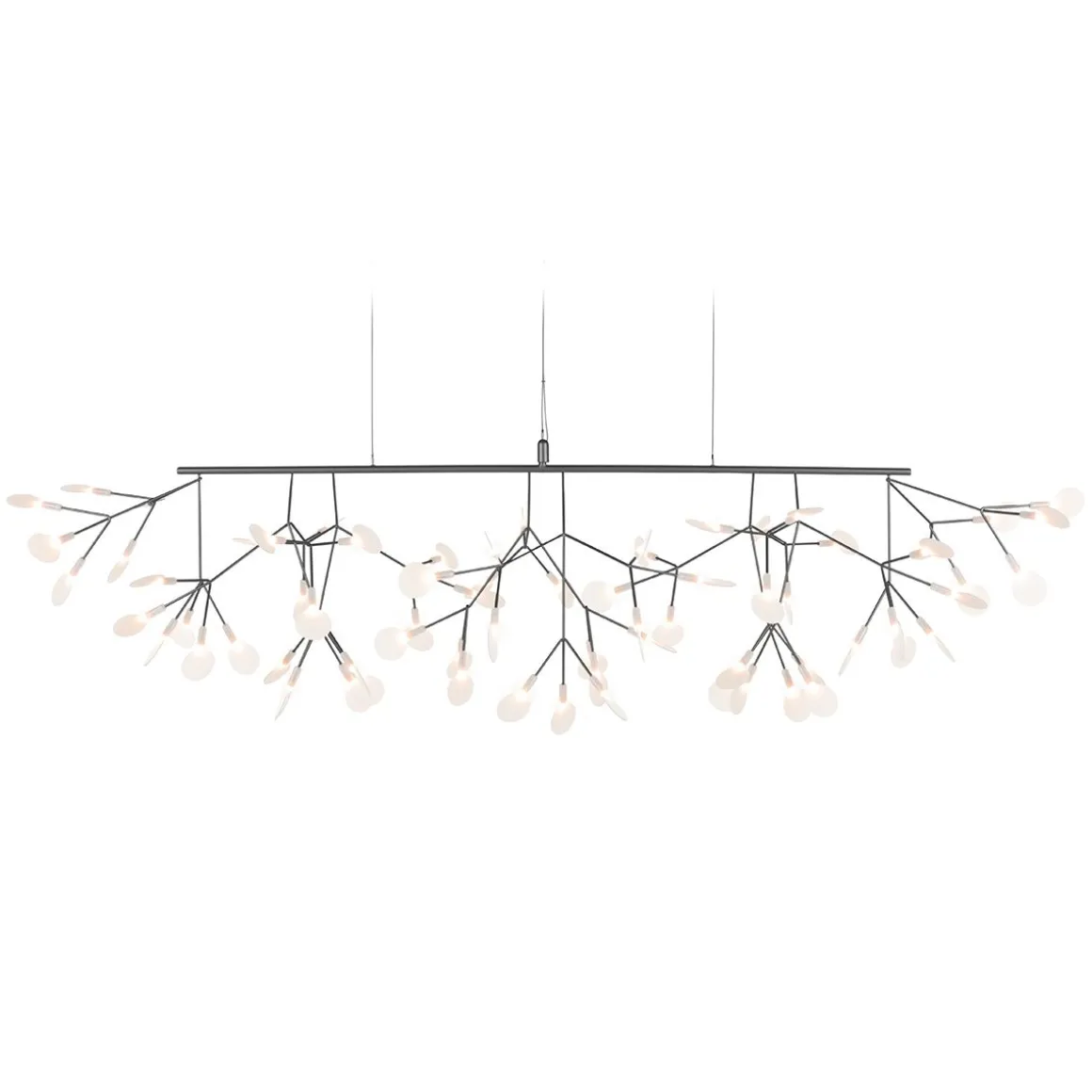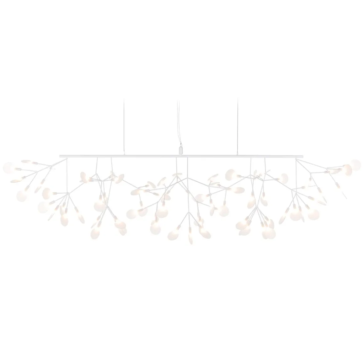 Ne confondez pas le nouveau Heracleum III Linear avec son frère Endless. Regardez attentivement et vous verrez des fleurs balayant doucement vers le haut de chaque côté, ce qui rend le Heracleum III Linear parfait pour accrocher au-dessus de longues surfaces, comme votre table à manger ou votre îlot de cuisine. Comme les autres modèles de la famille Heracleum, les branches maigres sont alimentées par Electrosandwich, du studio Marcel Wanders. L’Heracleum III Linear, disponible en trois couleurs, s’inspire de la plante à fleurs du même nom. Sa floraison figée dans le temps. Ce nouveau design de la famille Heracleum est le plus brillant de tous. Il contient un nouveau pilote, le rendant compatible avec notre interrupteur mural sans fil, et de nouvelles LED ; ensemble, ils offrent un rendement lumineux plus élevé qui crée une lueur chaleureuse.