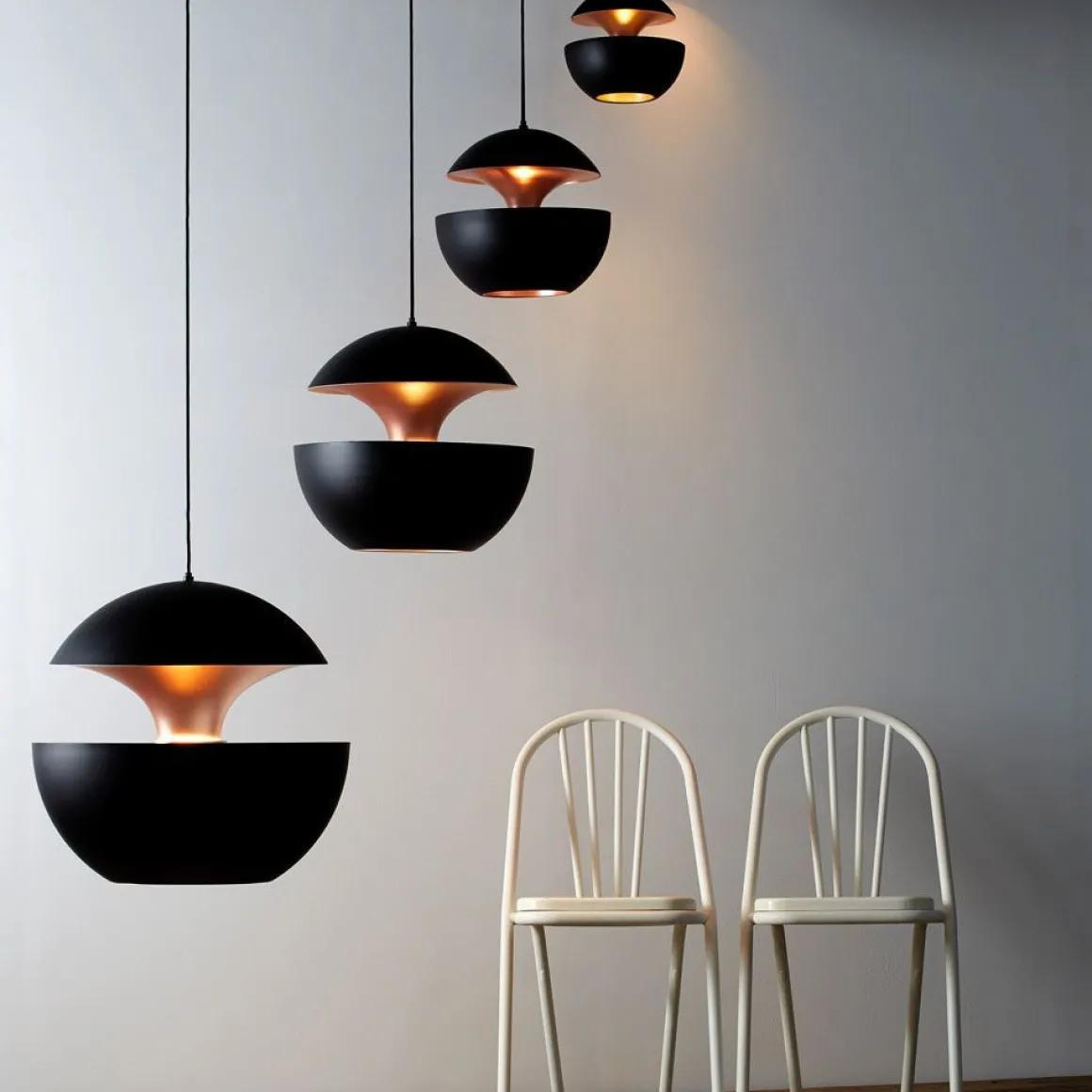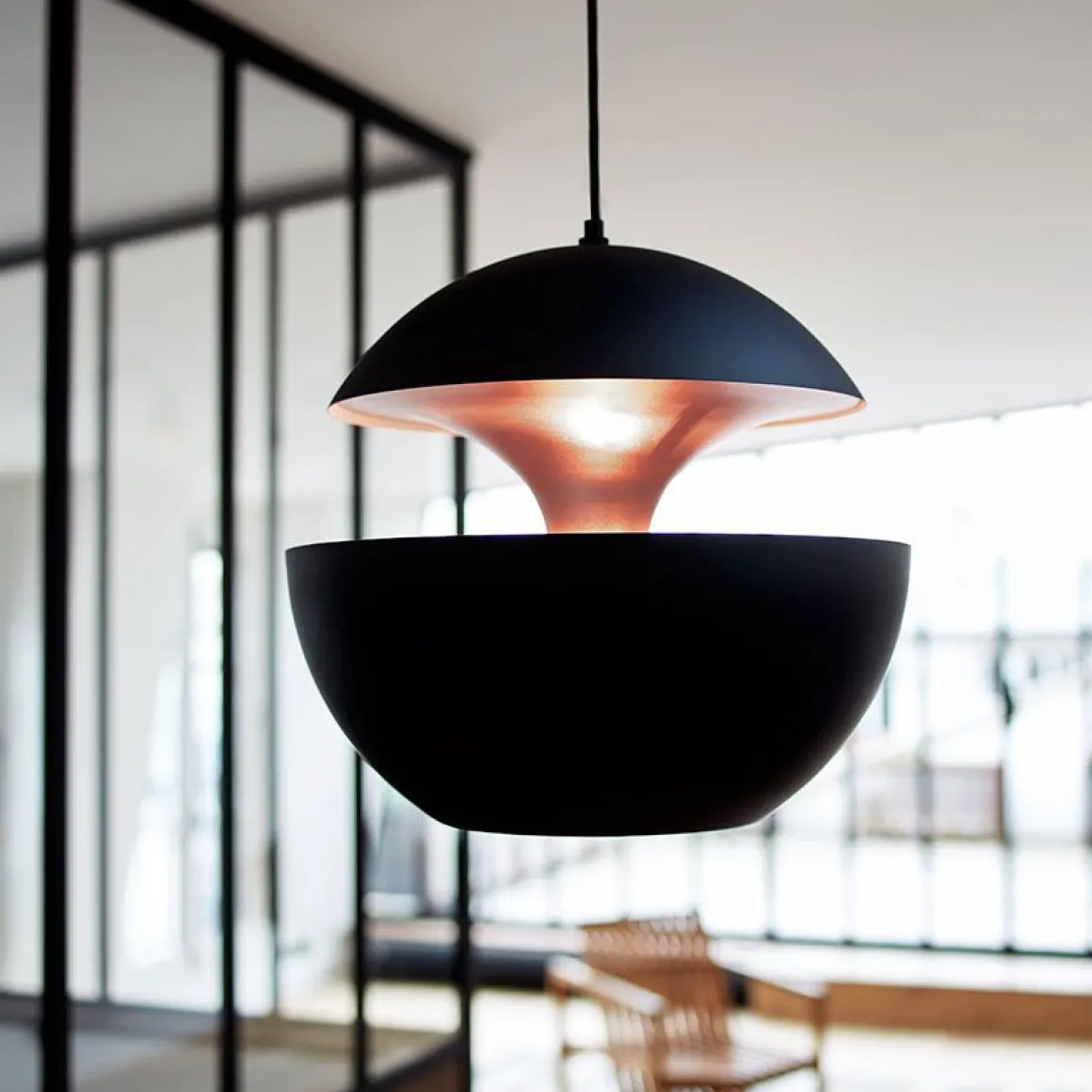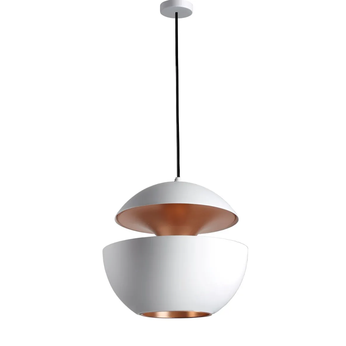 Les suspensions Here Comes The Sun diffusent une lumière directe et indirecte à la fois. Avec sa finition blanche et cuivrée, elle s’adapte parfaitement à votre chez vous pour un effet design et moderne !