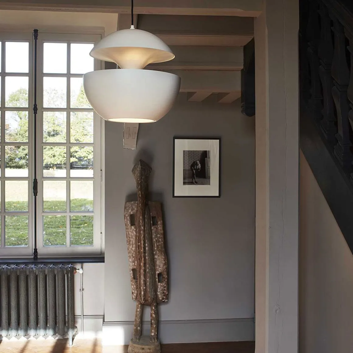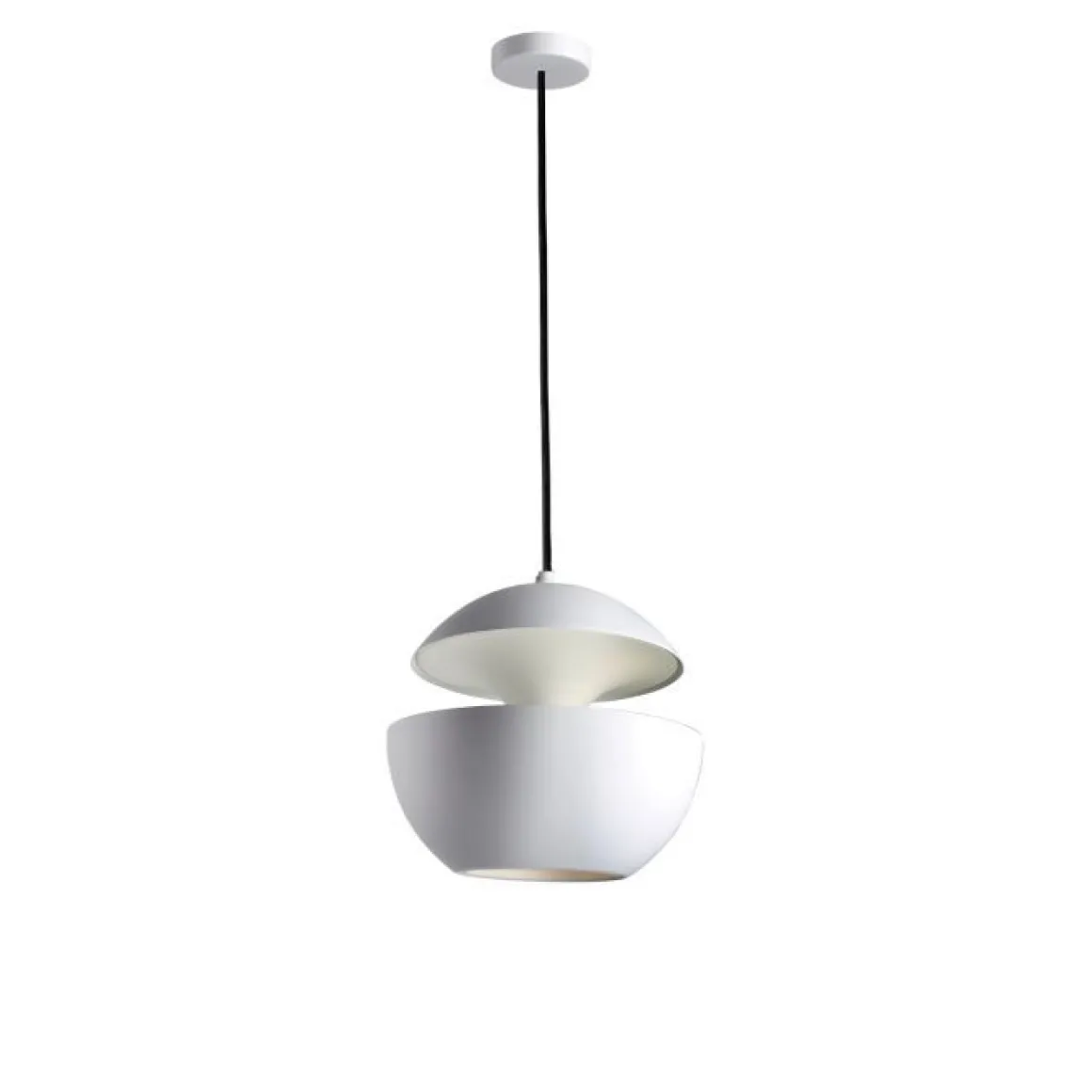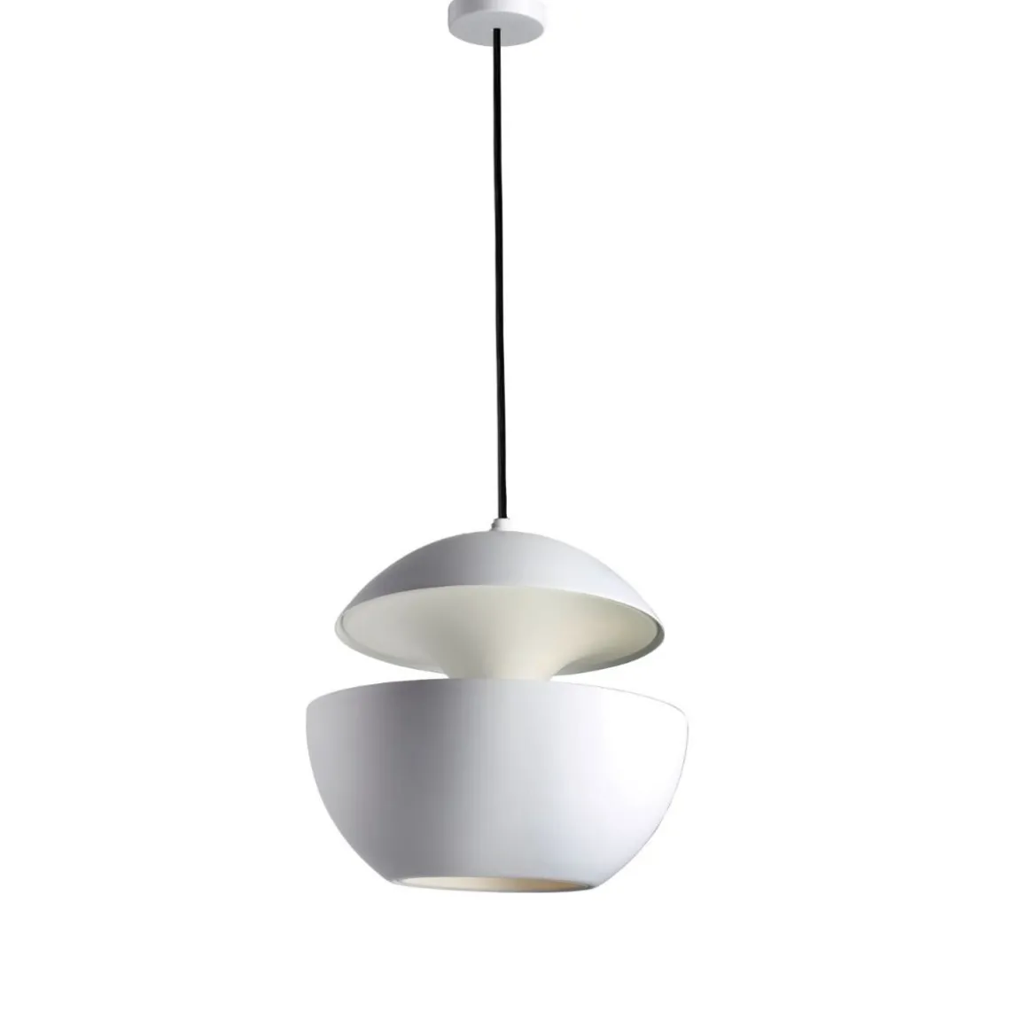 Bertrand Balas a créée en 1970, Here Comes the Sun, une suspension qui allumée devient magique. Elle existe en plusieurs tailles. On peut créer un bel effet en les multipliant en suspension. Sculpturale, Here Comes The Sun se compose d’un abat-jour en aluminium, suspendu à un câble en textile. Le dialogue formel entre intérieur et extérieur de l’abat-jour est absolument spectaculaire. L’ampoule est totalement intégrée dans le corps de la lampe, créant ainsi une symbiose parfaite entre le design et la source d’éclairage.