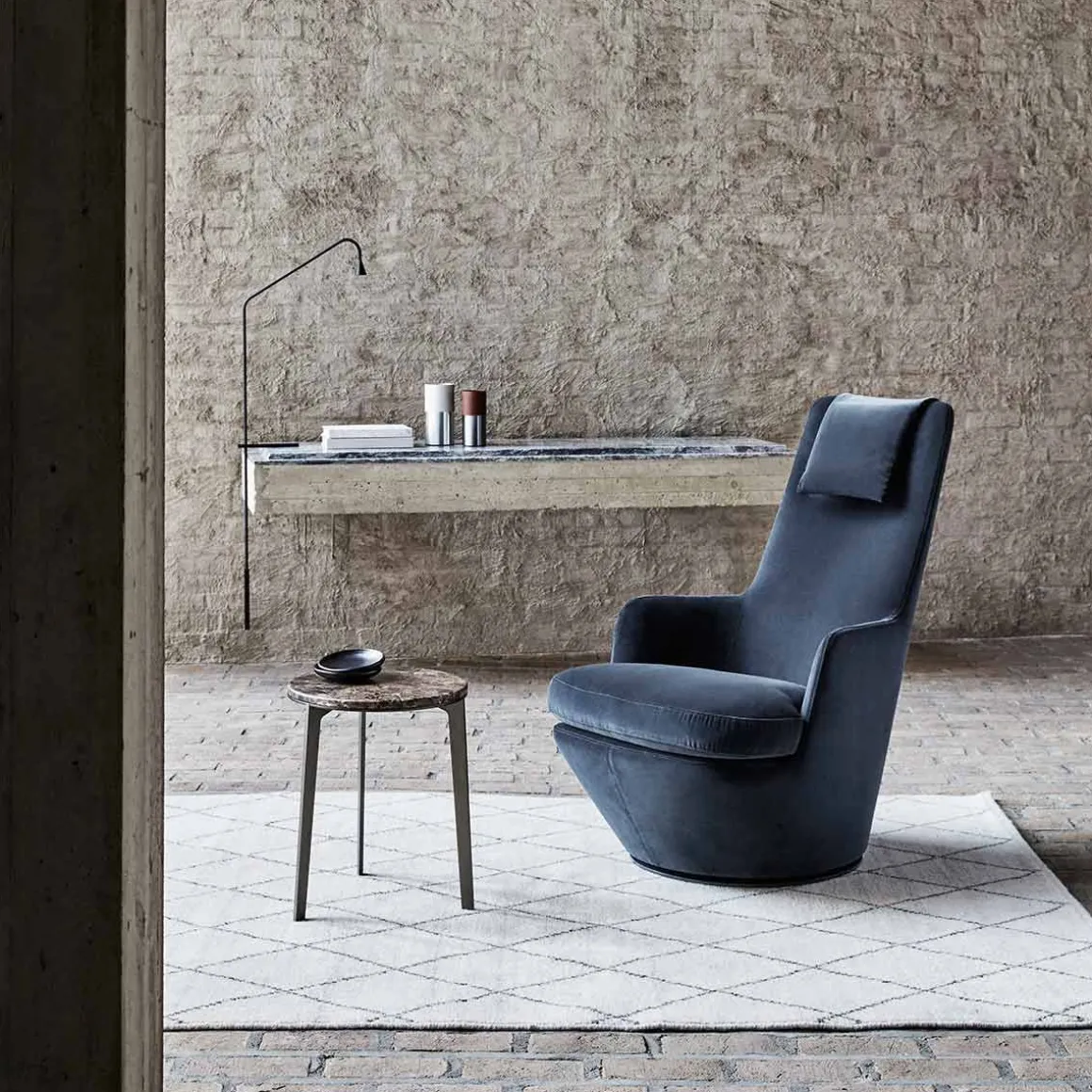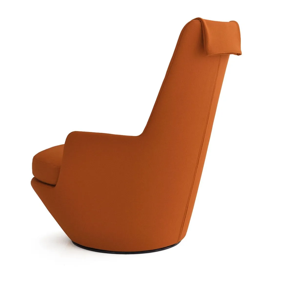 Hi Turn est un fauteuil long à dossier haut qui pivote en douceur à 360° grâce à sa base métallique circulaire. Confortable et personnalisé, c’est un bel ajout à n’importe quel espace.