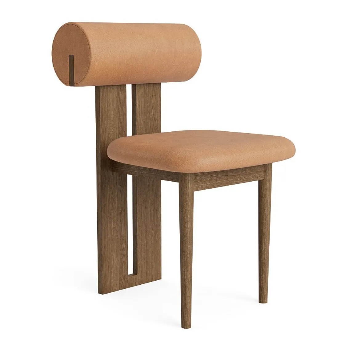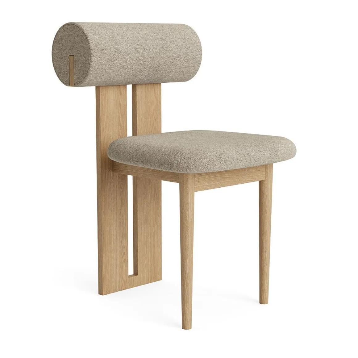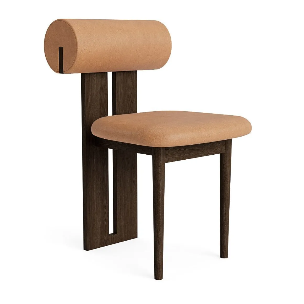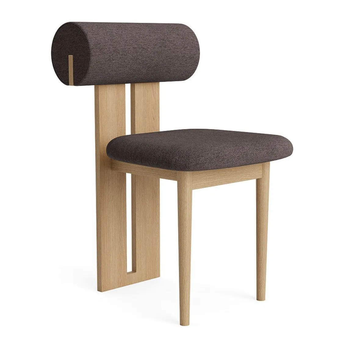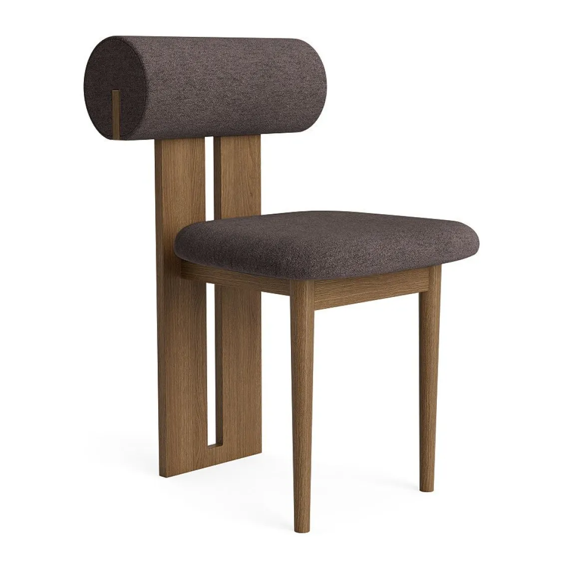 Inspiré des formes des années 70, mais conçu pour un style de vie moderne, Hippo se distingue par son design libre d’esprit. Le dossier arrondi de la chaise invite à une position assise plus libre, vous permettant de reposer confortablement votre dos ou vos bras. La chaise Hippo repose sur deux pieds en bois robustes, reliant parfaitement l’assise et le dossier. Le profil en bois distinctif agit comme un élément presque architectural qui contraste fortement avec le dossier et l’assise arrondis et moelleux.