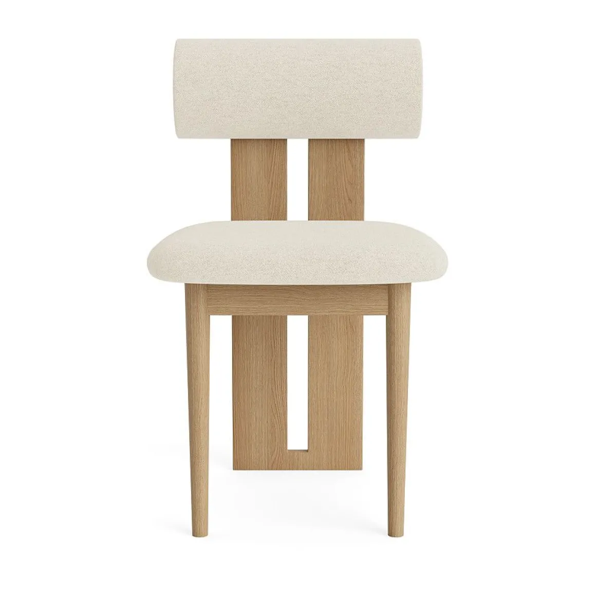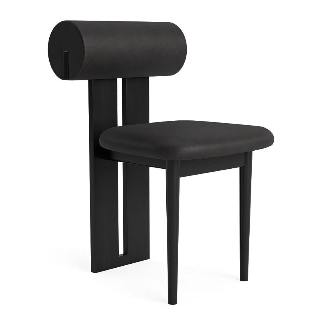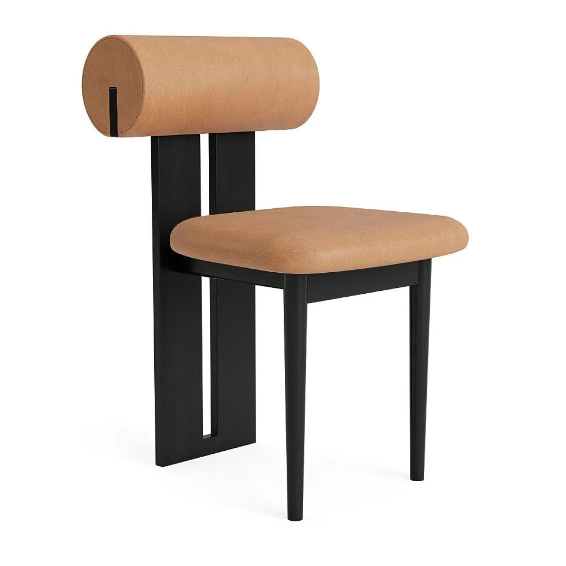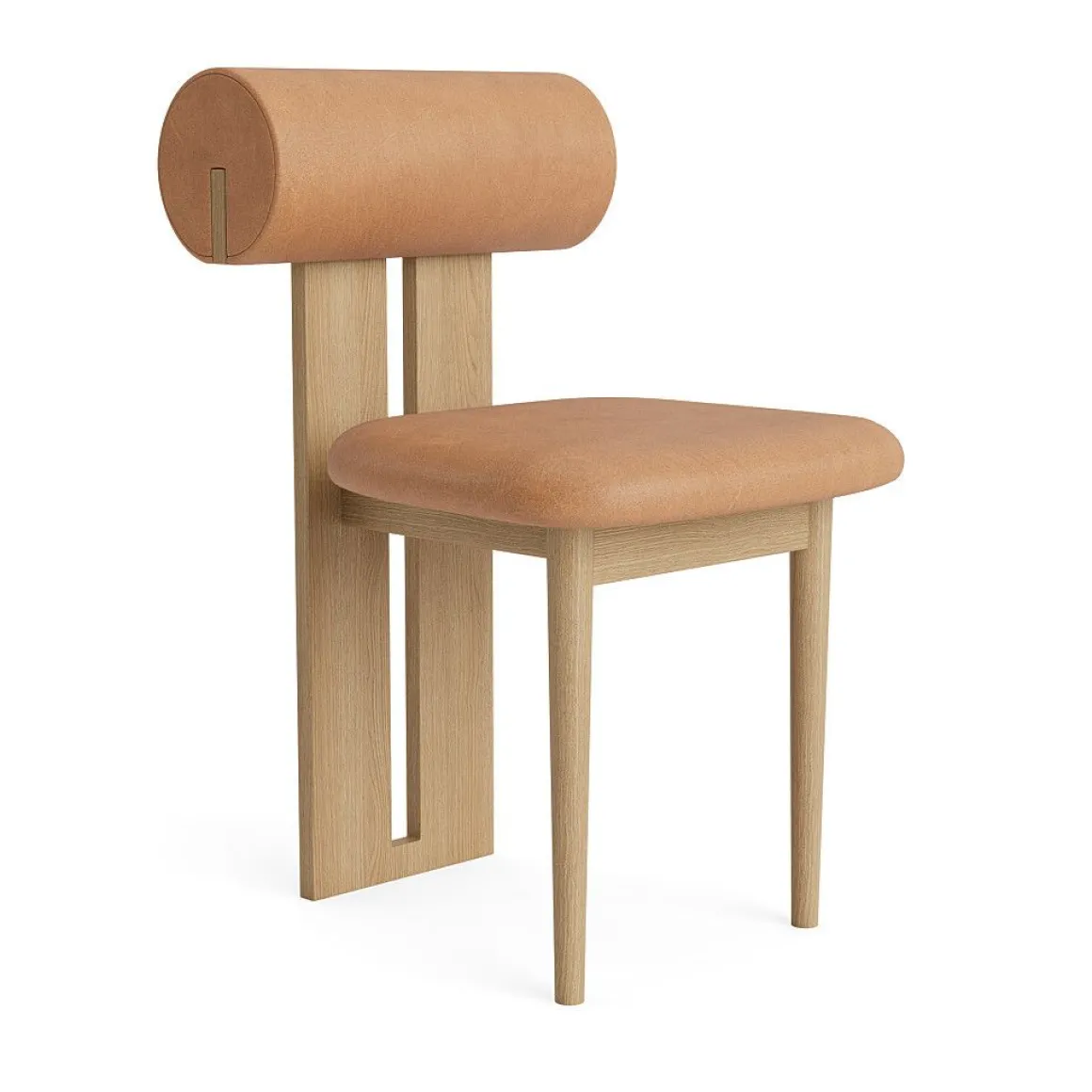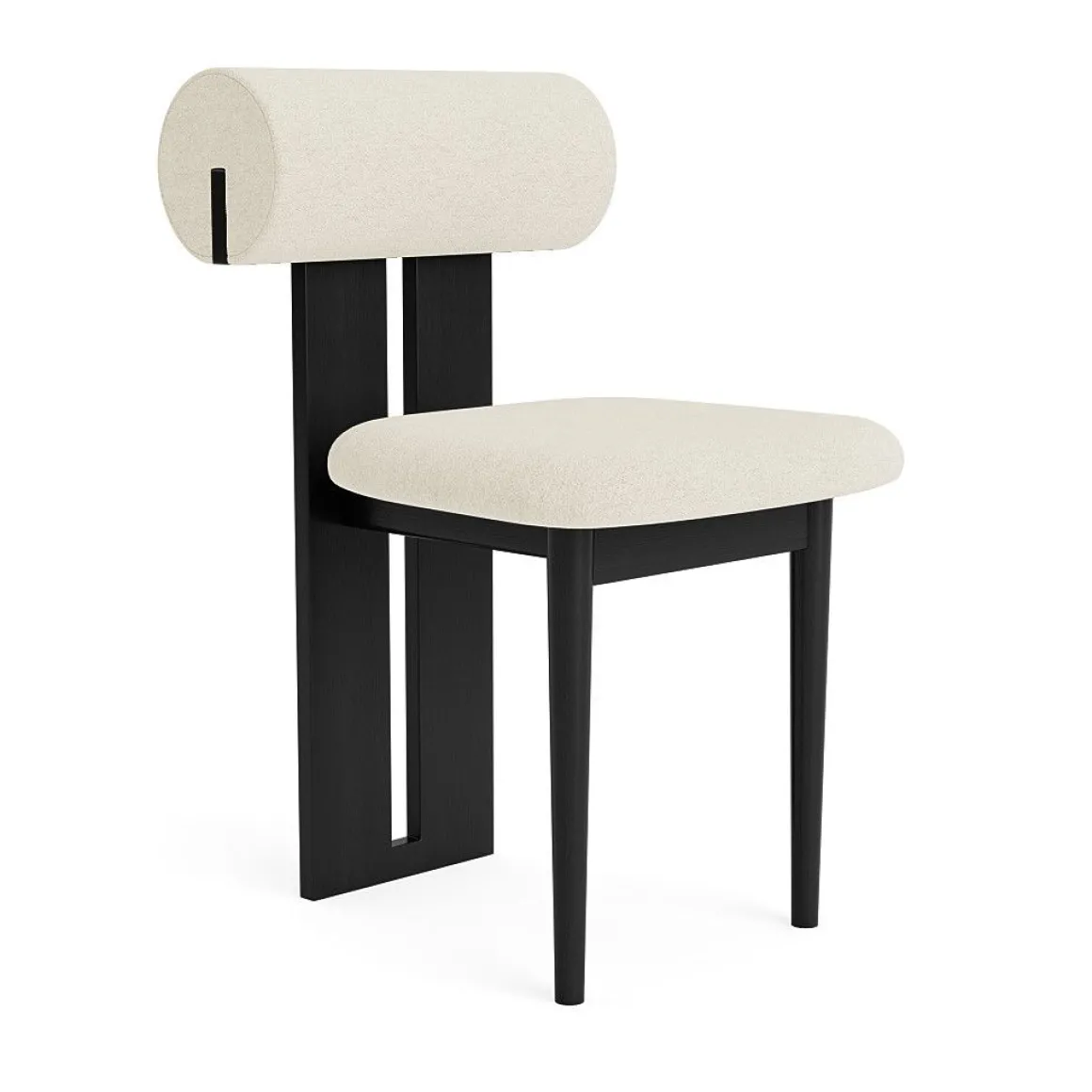 Inspiré des formes des années 70, mais conçu pour un style de vie moderne, Hippo se distingue par son design libre d’esprit. Le dossier arrondi de la chaise invite à une position assise plus libre, vous permettant de reposer confortablement votre dos ou vos bras. La chaise Hippo repose sur deux pieds en bois robustes, reliant parfaitement l’assise et le dossier. Le profil en bois distinctif agit comme un élément presque architectural qui contraste fortement avec le dossier et l’assise arrondis et moelleux.