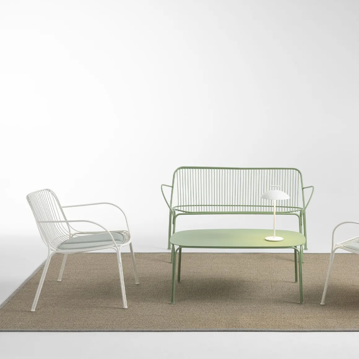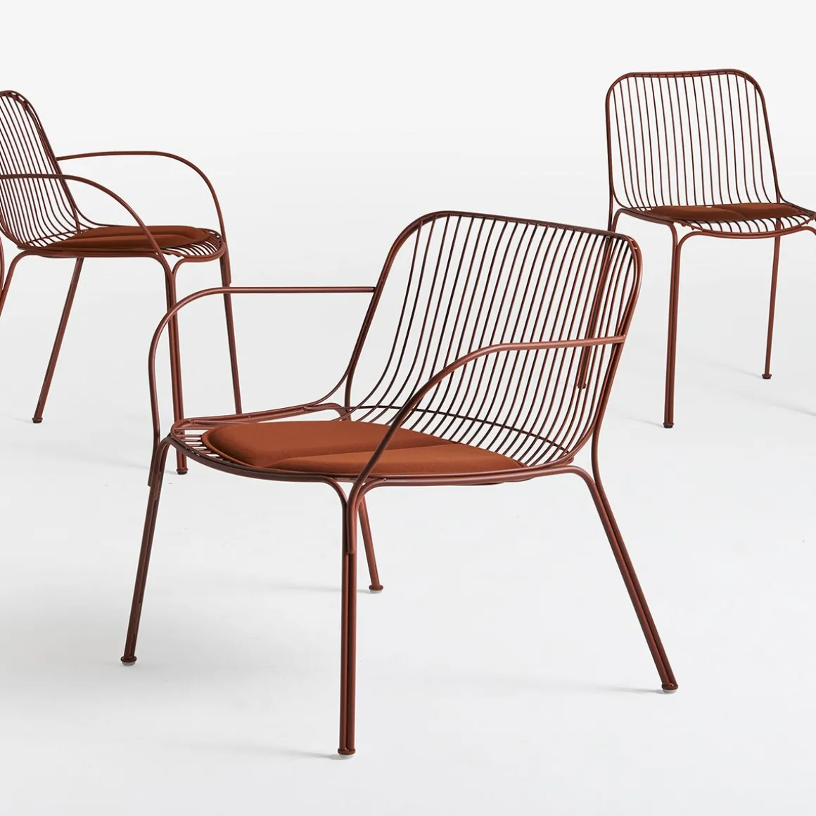 HIRAY joue avec le métal, l’un des matériaux les plus importants dans la redéfinition écologique du catalogue Kartell, en le travaillant avec la technique du fil soudé. Le résultat est un motif essentiel et fonctionnaliste, également imprégné d’émotion. Les fils de métal dessinent des pièces à la structure bien définie mais légère comme des chaises, des chaises avec accoudoirs, des tables de bistrot, des fauteuils, des canapés et des tables d’appoint.