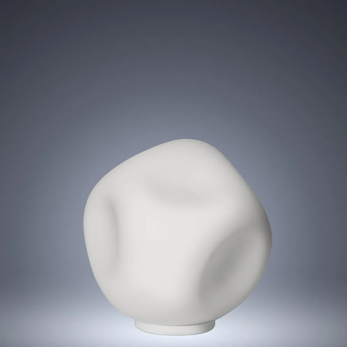 Inspirée d’une météorite, Hoba est une lampe de table asymétrique en verre soufflé mat qui diffuse une lumière chaude et douce dans la pièce. Il est fabriqué à l’aide d’un processus de production original à moule ouvert qui permet d’obtenir des formes similaires mais toujours variables, uniques mais répétables.