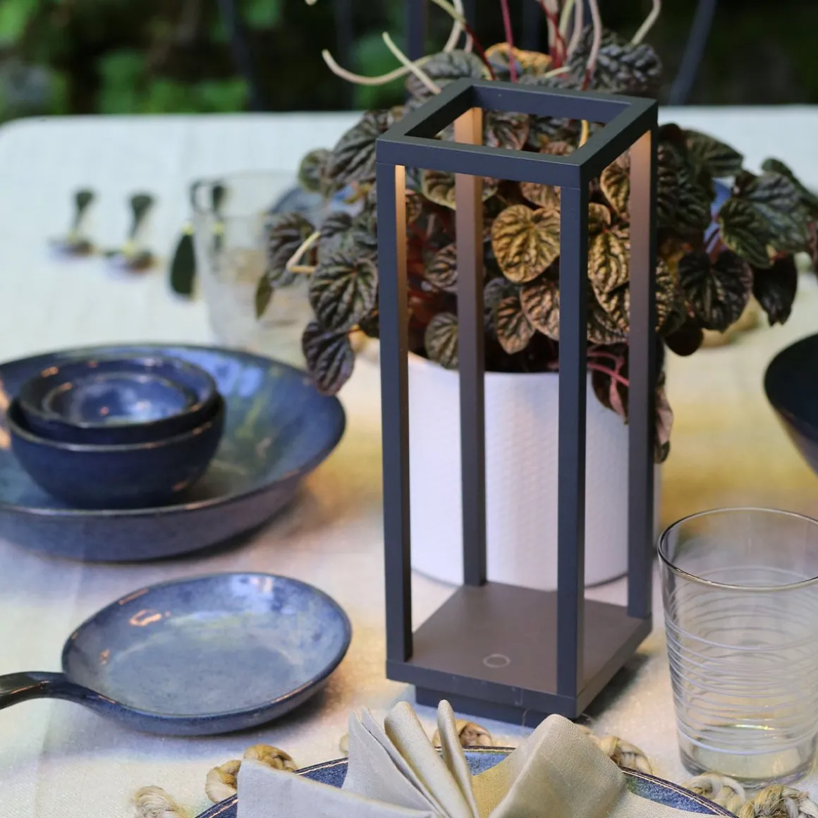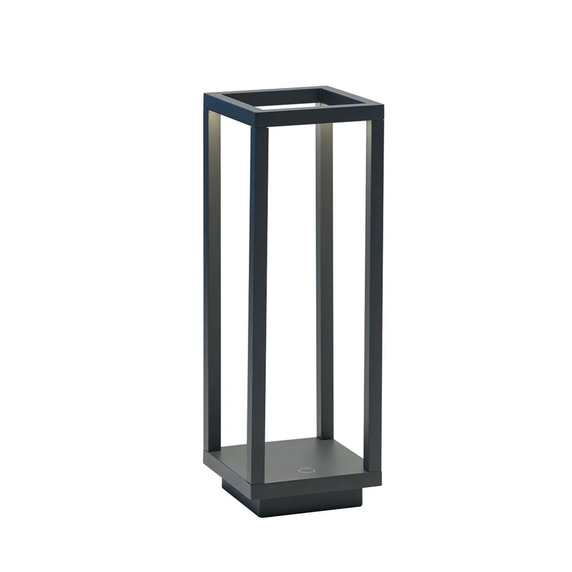 Home est une lampe de table pratique à piles dont les formes essentielles et géométriques rappellent celles d’une lanterne contemporaine. La sources LED est logée dans la partie supérieure de la structure en aluminium et émet une lumière directe vers le bas. Utilisable également en extérieur, grâce à l’indice de protection IP54, Home est disponible en trois coloris : blanc, gris foncé et corten. Un bouton tactile situé sur la base de commende l’allumage et l’extinction et permet le réglage de l’intensité lumineuse (dimmer). La batterie, avec la lumière réglée à la puissance maximale, dure environ 12 heures ; pour la recharger complètement (à 1A, sur le socle spécial contacts) il en faut 6. En fin de vie, les piles en lithium sont remplaçables.