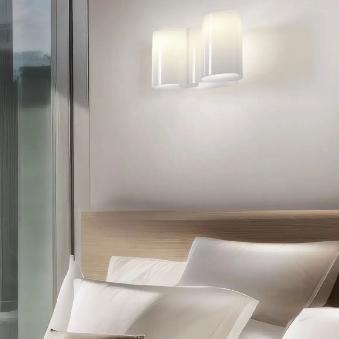 Honey de Stilnovo. Honey applique est un jeu modulaire sophistiqué qui interprète la lumière comme un élément architectural. Il marque l’espace avec rythme et harmonie, conférant une élégance discrète et contemporaine. Les diffuseurs ondulés en matériau opale filtrent la lumière de manière naturelle, générant des nuances délicates et des reflets dynamiques qui soulignent la tridimensionnalité du design.