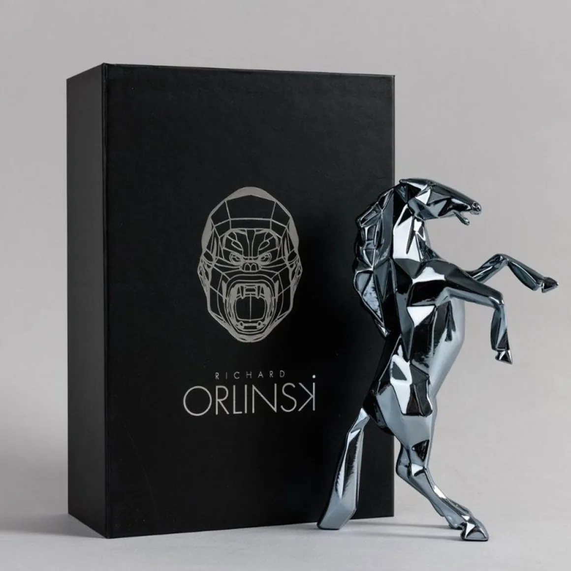 Poursuivant sa quête sur la puissance de nos instincts, Richard Orlinski sculpte un cheval cabré.Posé sur les pattes arrière et la queue, son cheval danse. Libre et impétueux, sa nature sauvage se révèle pleinement dans cette oeuvre. Découvrez sa reproduction dans une couleur gris cendrée !