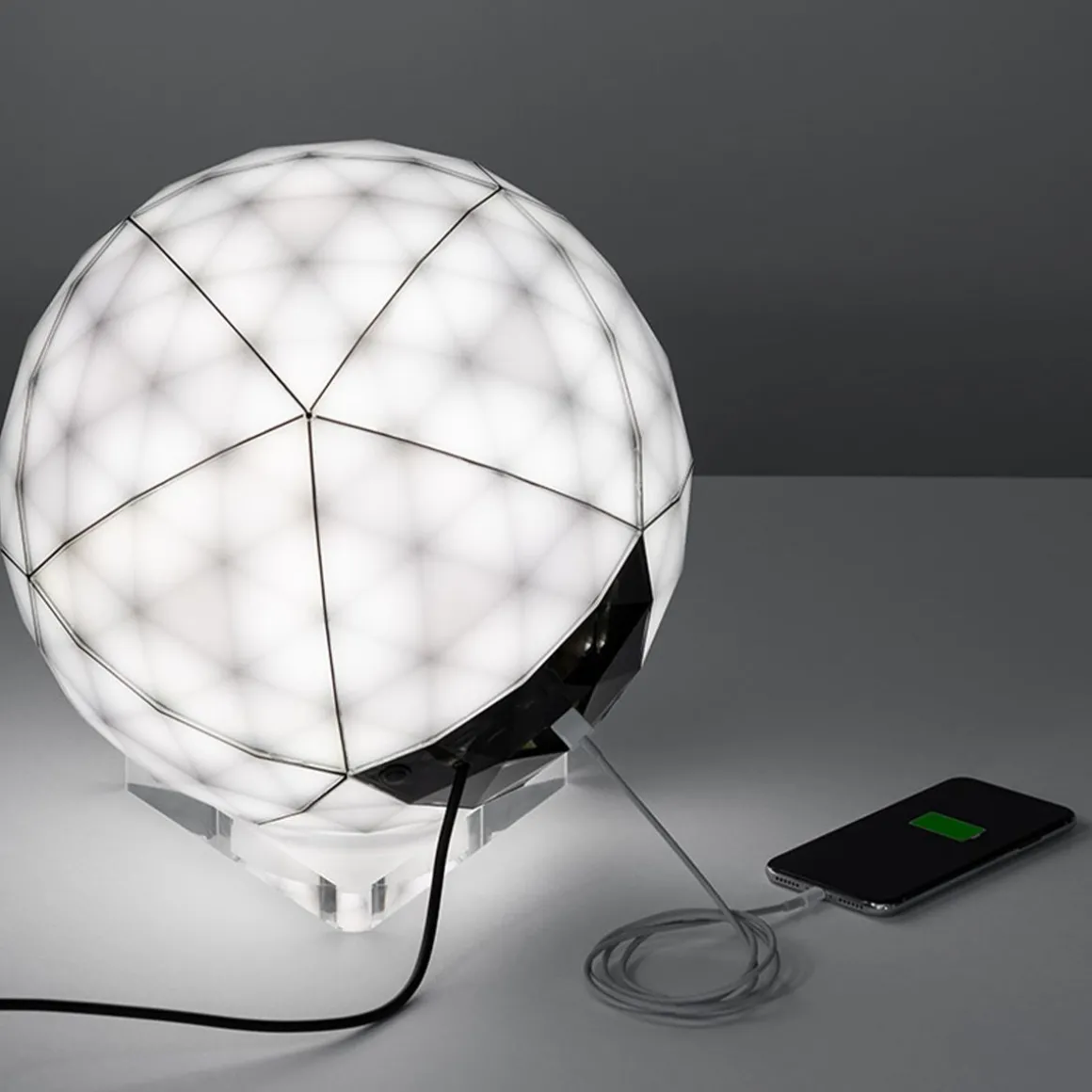 Au début, l’homme avait uniquement à disposition la lumière des étoiles : le soleil et son reflet sur la lune. Pendant des millénaires, l’humanité a accepté son incapacité de voir dans l’obscurité et s’est adaptée, par conséquent, au rythme naturel des sphères célestes, de l’aube et du coucher du soleil. L’apparition de l’usage contrôlé du feu a marqué le début d’une recherche de la manière de transformer à son gré la nuit en jour. L’étape successive dans la production de lumière a eu lieu avec le développement des diodes émettrices de lumière (LED). Pour la première fois, la lumière s’est déplacée du règne électrique au domaine de l’électronique. Mais, pour une raison quelconque, ce passage si révolutionnaire n’a pas imprégné la société ; les personnes recherchent les sources et les lampes dans la section électroménagers et non pas dans la section électronique. D’une part, nous voulons que la lumière varie son intensité et sa direction comme sur la base de phases plus qu’en déplaçant des pièces d’un mécanisme. D’autre part, nous voulons reconnaître le fait que l’avenir de la lumière est électronique, non pas électrique. Le potentiel distinctif de l’électronique est sa capacité de transporter des informations qui consentent de multiples modalités d’interaction, comme un écran tactile. Par conséquent, notre projet est une sphère foncée à basse tension, mobile, activée intuitivement par le toucher. Huara est le mot aymara pour étoile. Aymara est la population indigène du désert d’Atacama, le più aride et foncé du monde, le lieu d’où l’on peut voir le plus grand nombre d’étoiles de la planète.