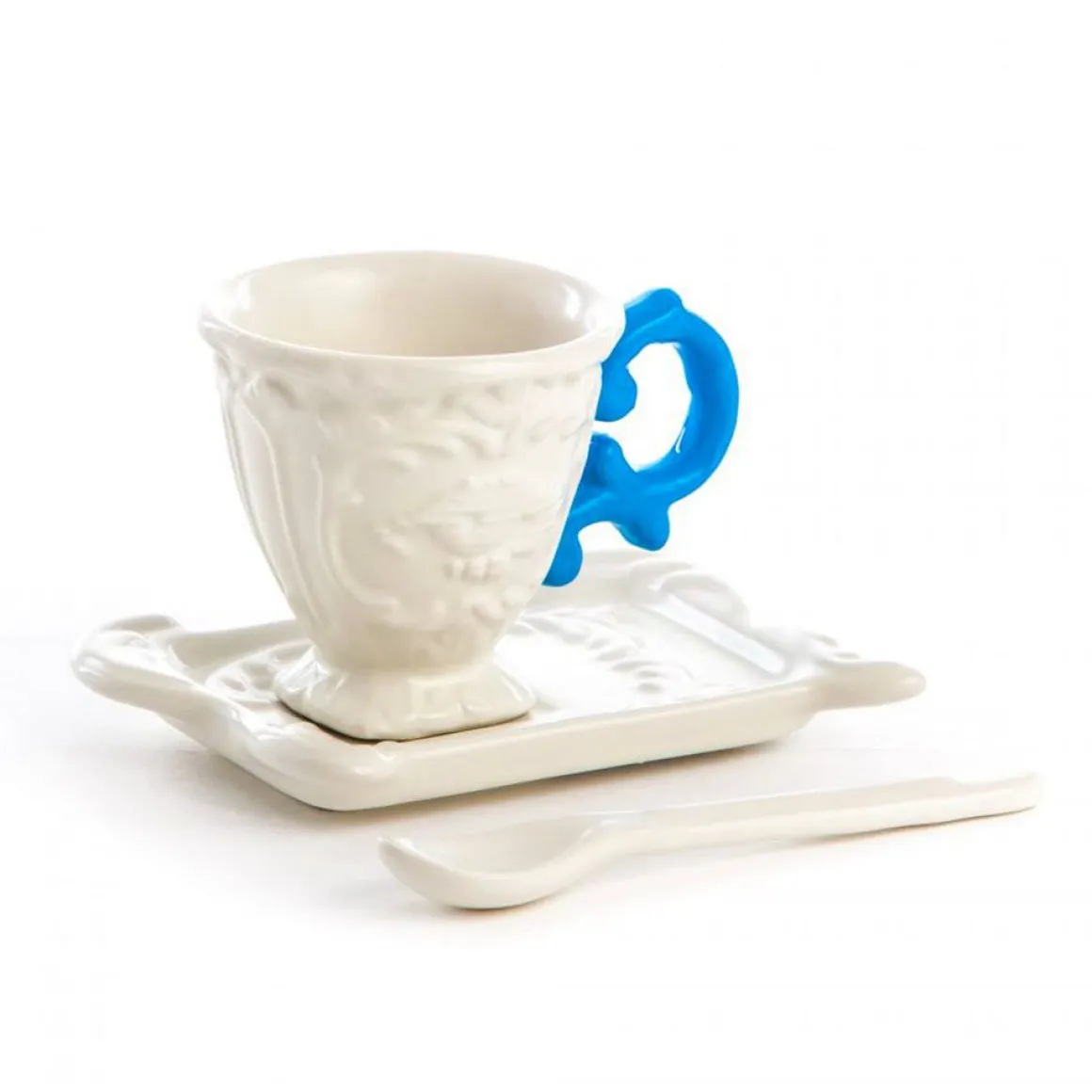 Mugs, services à thé et café d’inspiration baroque. Porcelaine fine opaque avec finition blanc mat et poignées de couleur fluorescente. Brillante et élégante, la nouvelle finition dorée brillante donne à la collection une nouvelle façon de vivre sophistiquée.