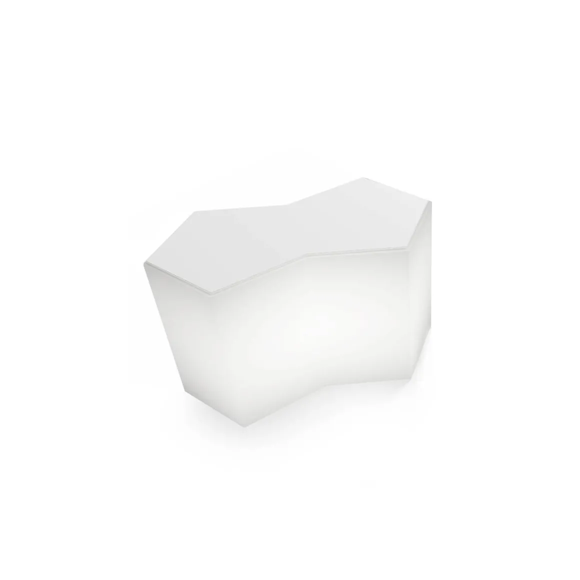 Les modules, dont la forme constitue un double pentagone, sont approchables pour composer des formes infinies dans les dimensions souhaitées. Sont inclus des tablettes internes et un plateau pour compléter la partie supérieure. Il peut être aussi équipé d’une installation d’allumage qui le transforme dans une composition lumineuse et suggestive.