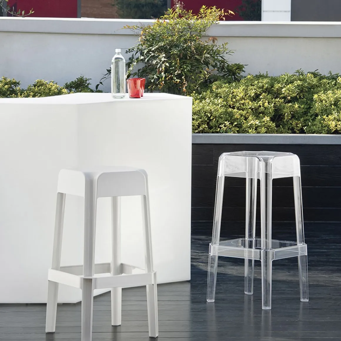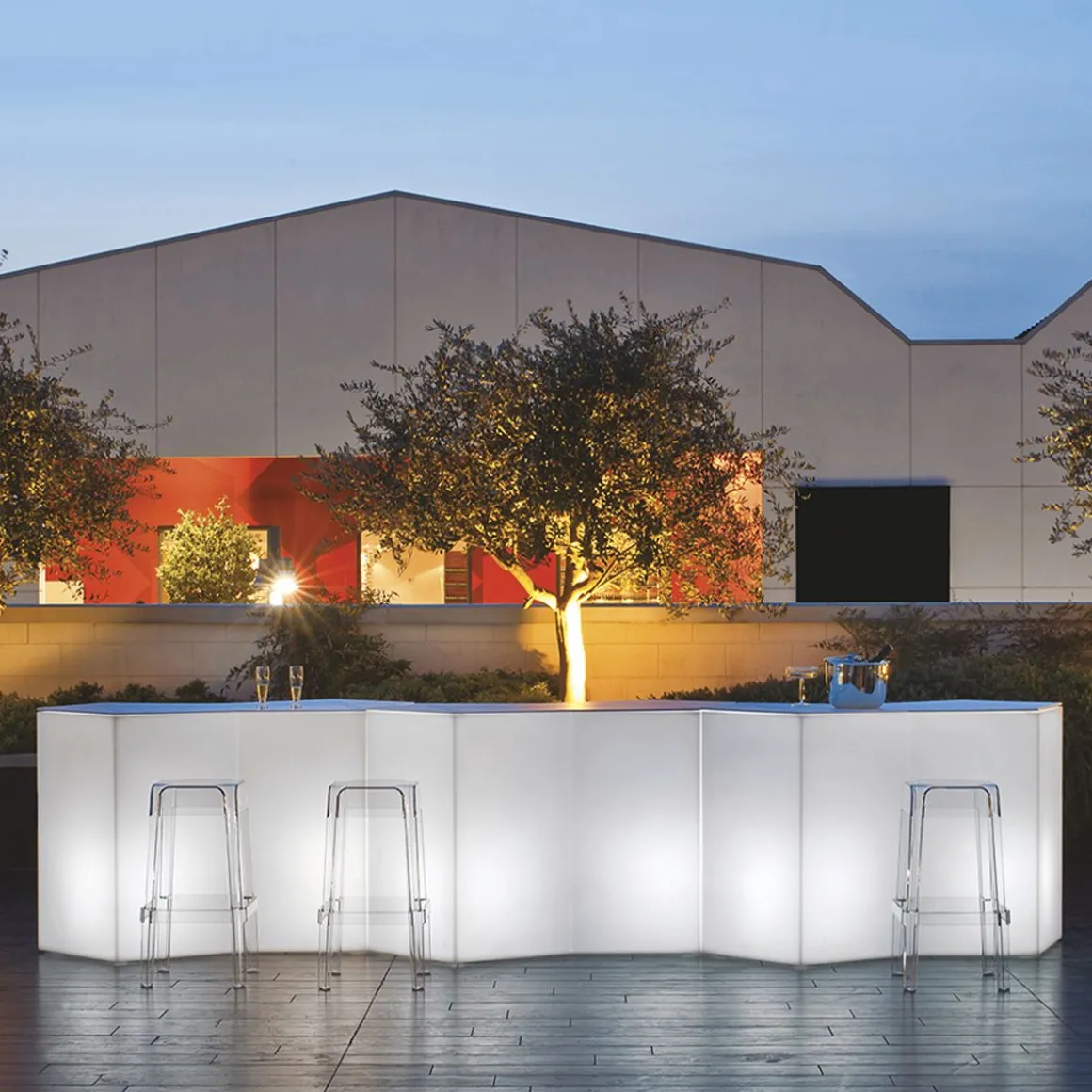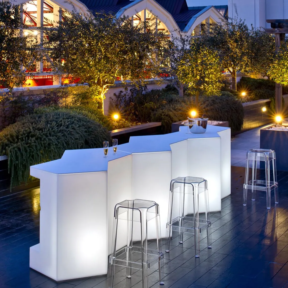 Comptoir de bar modulaire ou table haute pour buffet, Iceberg est idéal pour le bar, le bar en plein air, à côté de la piscine, à la plage, en jardin pour l’apéritif ou pour le snack. Il est en polyéthylène à haute densité, injecté en roto-moulage.