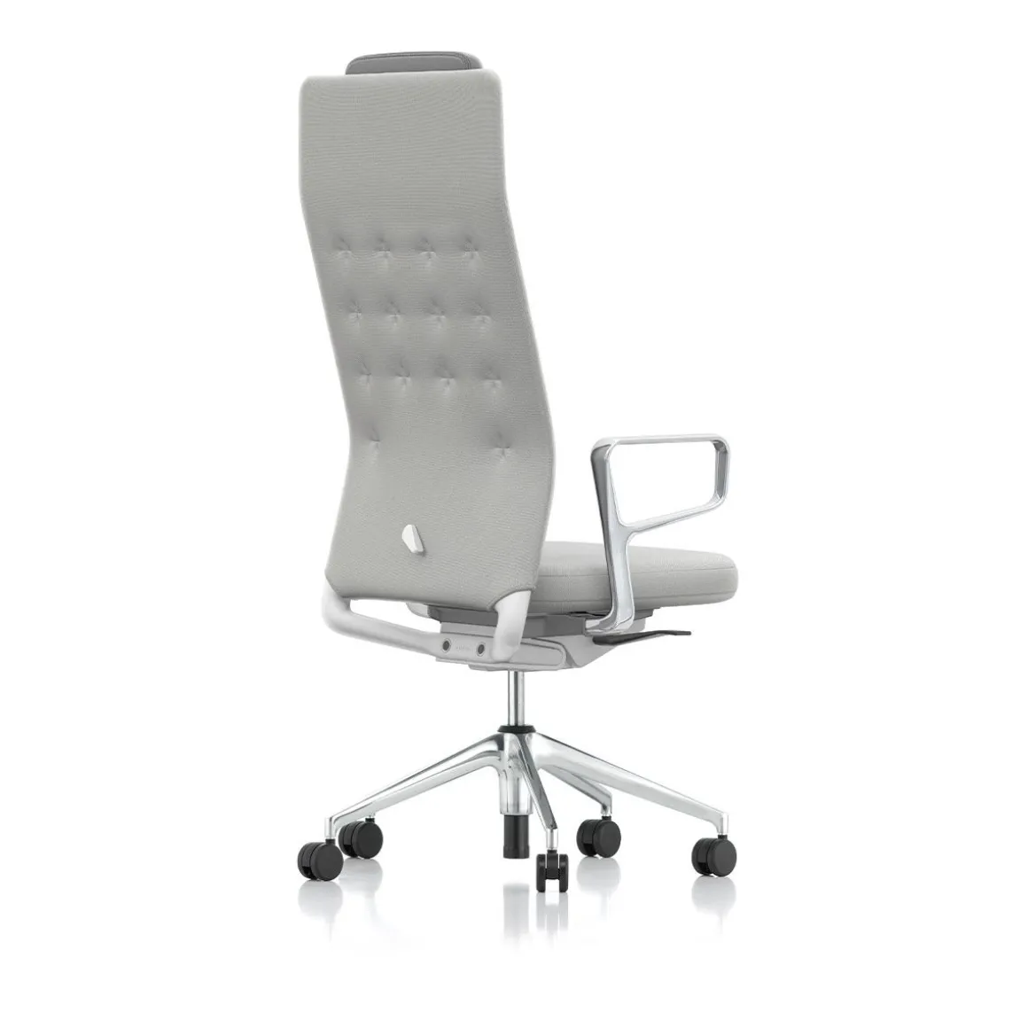 Accoudoirs : accoudoirs 2D réglables en hateur et largeur ou accoudoirs 3D à hauteur; largeur et profondeur réglables et pivotant à 360°. Supports d’accoudoirs en aluminium poli. Manchons pour accoudoirs en polyamide assorti à la couleur du cadre (basic dark ou soft grey). Avec surfaces d’appui en polyuréthane basic dark (pour cadre de couleur basic dark) ou dimgrey (pour cadre de couleur soft grey). En option, également disponible avec des accoudoirs fermés en aluminium injecté poli, avec ou sans réglage de la hauteur, pour les salles de conférence. Supports des accoudoirs fermés réglages en hauteur de polyamide asssorti à la couleur du cadre (basic dark ou soft grey)