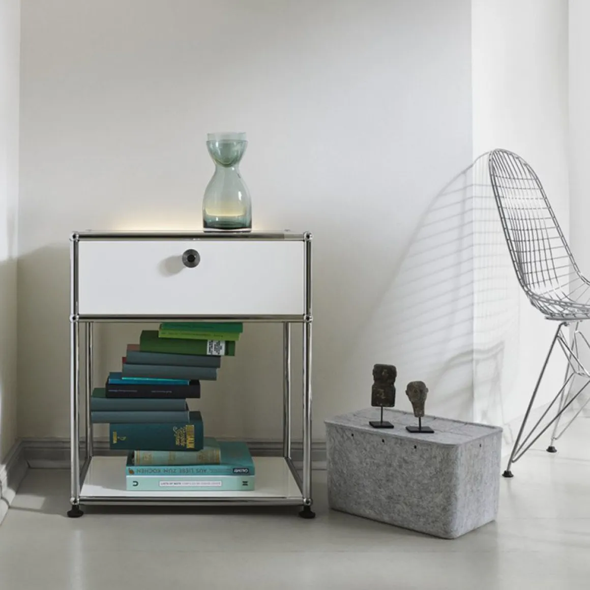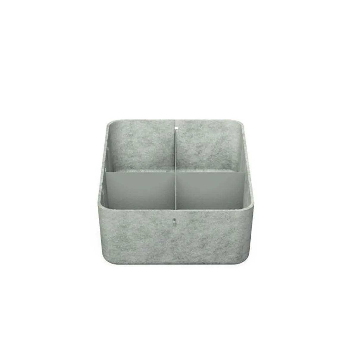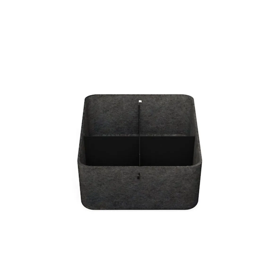 La USM Inos Box permet de ranger et protéger vos petits trésors ainsi qu’une foule d’objets du quotidien. Les séparateurs métalliques assurent une parfaite organisation de son contenu. Fabriquée en polyester non tissé avec finition en feutre gris anthracite clair ou foncé, la USM Inos Box s’intègre parfaitement à votre meuble USM Haller.