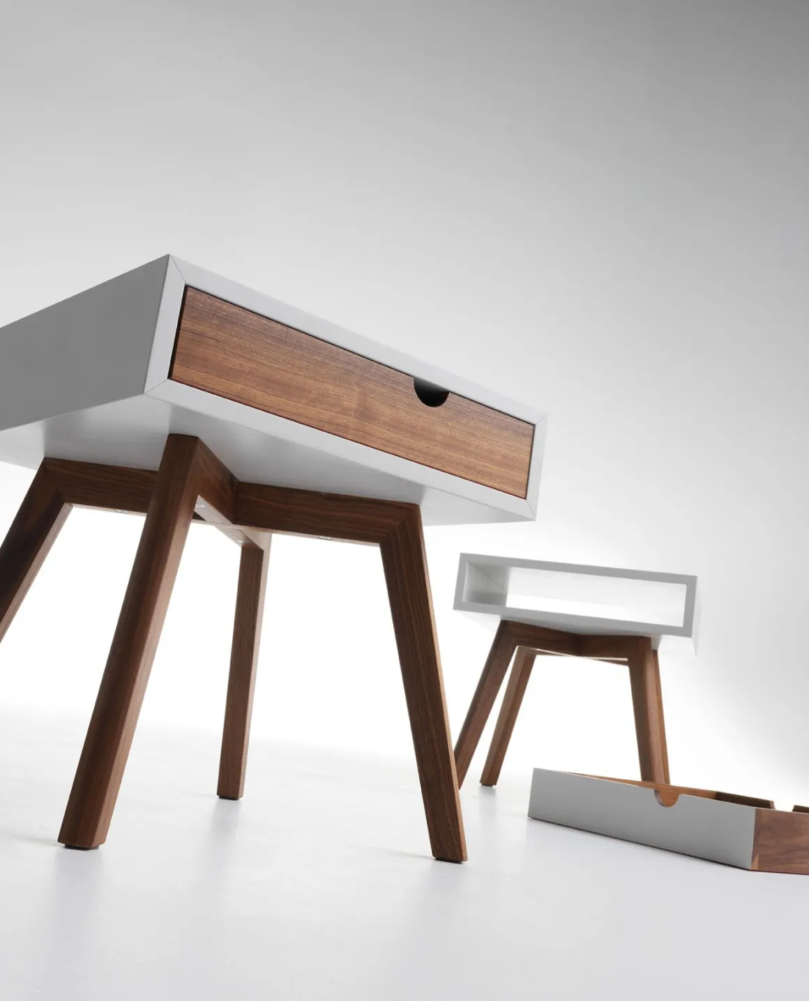 Une table de nuit avec tiroir tout en bois, pour un côter pure et naturel.Dans l’espace jour au contraire Io e Te se transforme en une agréable petite table de service avec tiroir complètement extractible qui le cas échéant peut servir de plateau pratique.