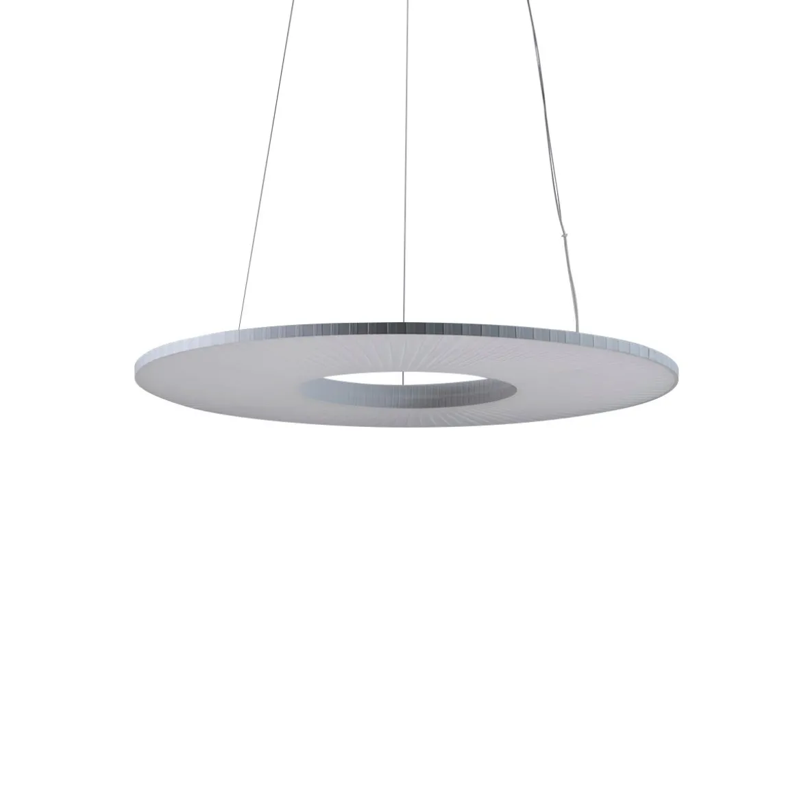 Suspension horizontale ruban blanc, canopy blanc. Éclairage LED intégré, variable TRIAC.