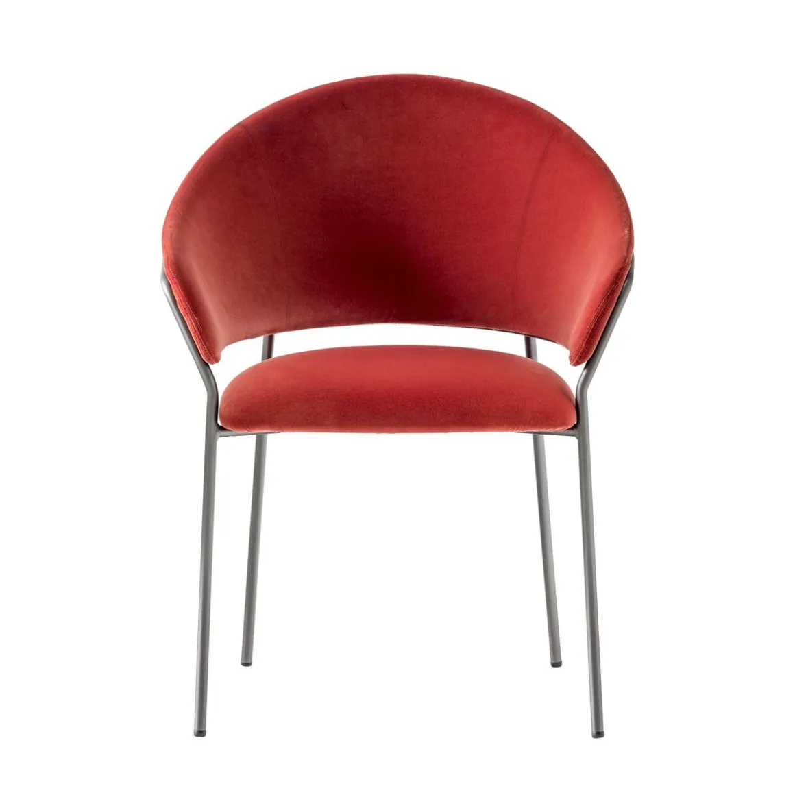 Harmonie des formes, ergonomie et élégance sont des caractéristiques du fauteuil jazz. L’assise et le dossier incurvé sont soutenus par une structure en acier léger. La personnalisation est assurée par la combinaison du revêtement, en velour, avec les différentes finitions en acier.