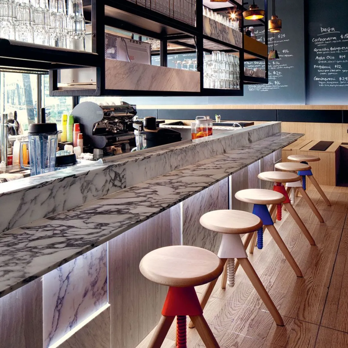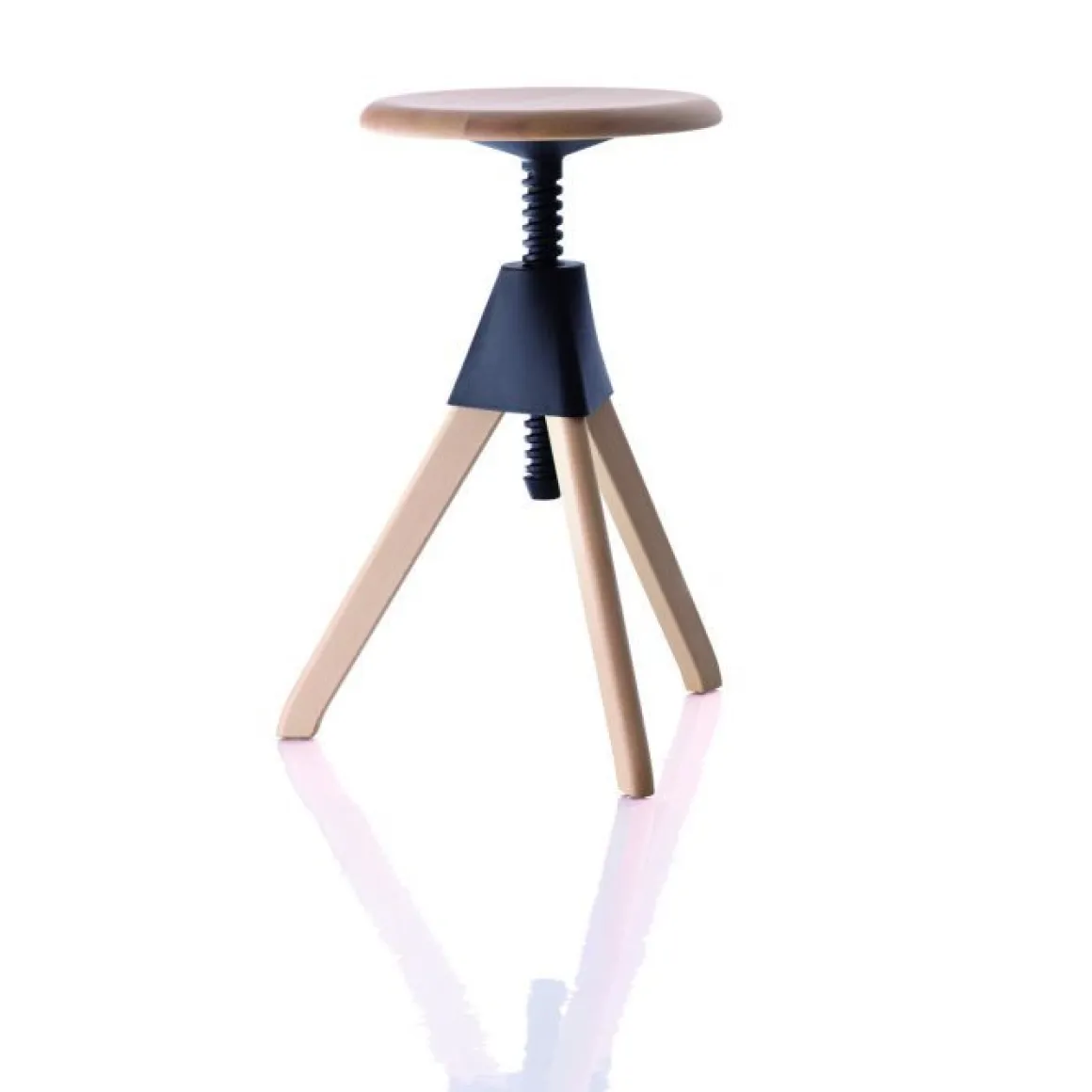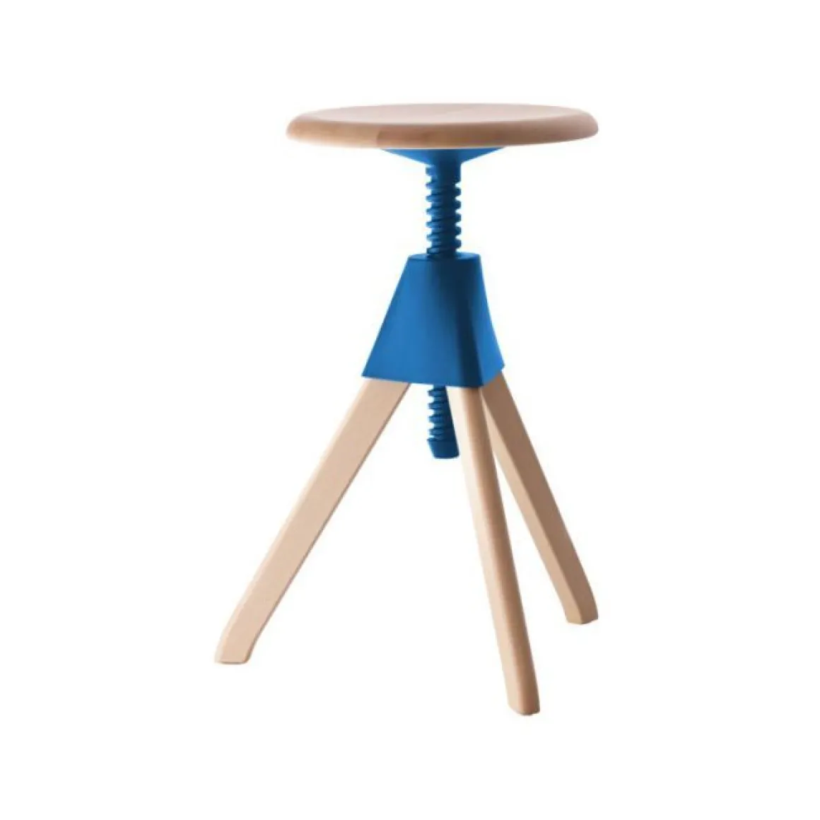 Konstantin Grcic nous livre une réinterprétation moderne, ludique et colorée du tabouret d’atelier. Ingénieux et très fonctionnel, Jerry est doté d’une assise pivotante et réglable en hauteur. Le mécanisme à vis, traditionnellement réalisé en acier, est ici en polypropylène auto lubrifié. On aime le savoureux mélange du hêtre massif et du plastique coloré. Disponible en plusieurs coloris, le tabouret Jerry apporte une touche design et contemporaine à votre bureau ou dans d’autres pièces de votre maison. « Le projet de Tom and Jerry est le re-design d’une typologie de meuble classique, à savoir le tabouret d’atelier. Le tabouret à trois pieds (en deux hauteurs différentes) est réalisé en hêtre massif avec parties mécaniques en plastique autolubrifié qui, grâce à la simplicité du mécanisme permet de s’asseoir sur le tabouret et d’en régler la hauteur. Le contraste entre la beauté et la qualité visuelle et tactile du hêtre et le plastique des éléments mécaniques est un contrepoint de style qui donne une certaine flexibilité d’utilisation au produit, en en suggérant l’emploi dans les situations les plus variées et dans des contextes domestiques ou de travail : du cabinet d’architecte à la chambre d’un enfant, du bar moderne et de tendance aux espaces communs d’une école maternelle, le tabouret Tom and Jerry a sa place n’importe où et y assure à merveille sa fonction primaire. » Konstantin Grcic