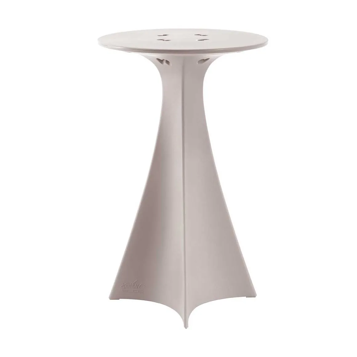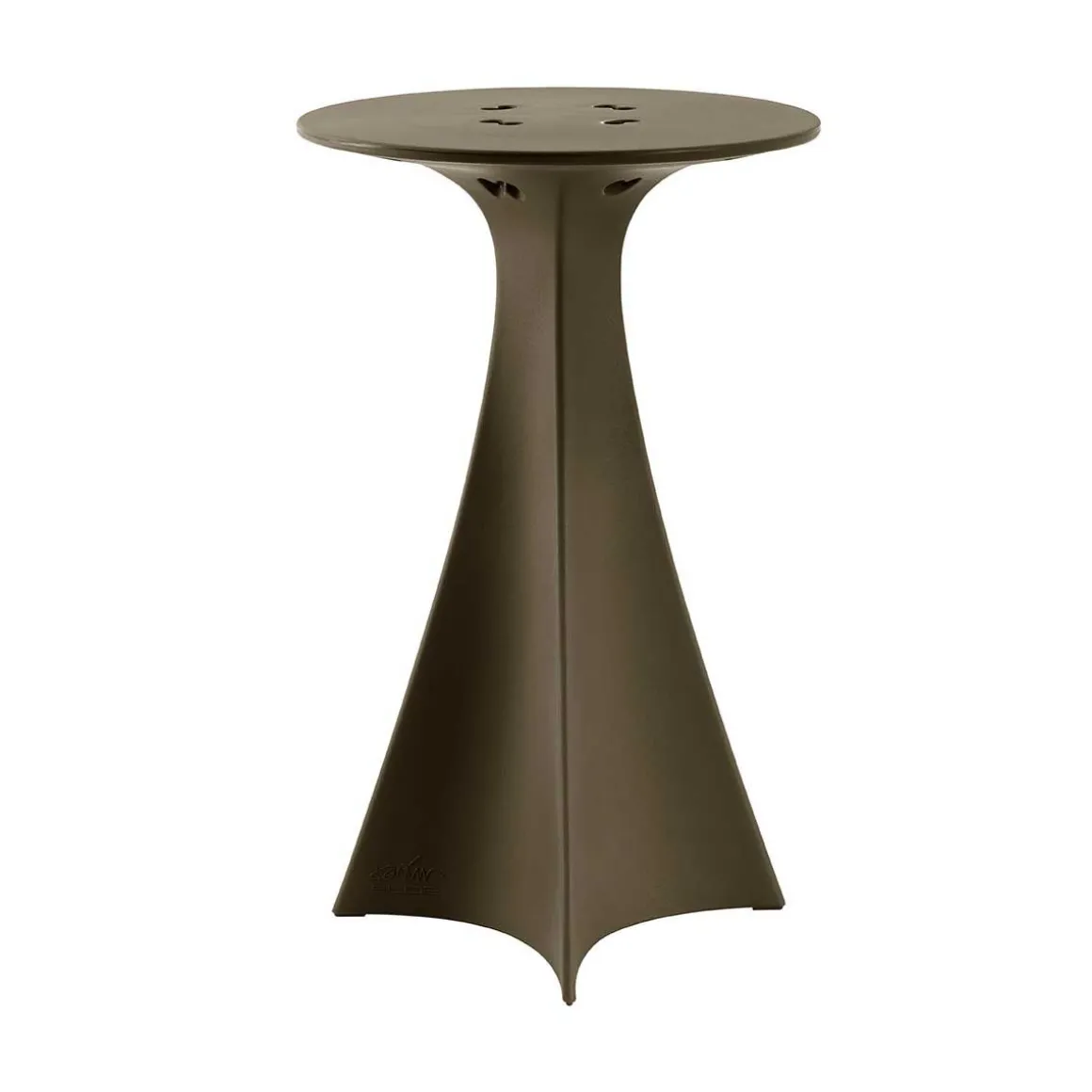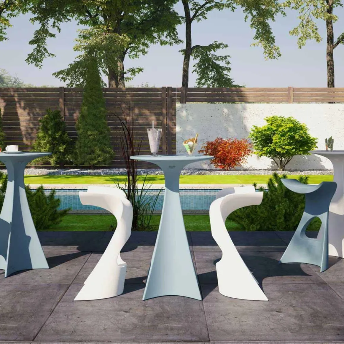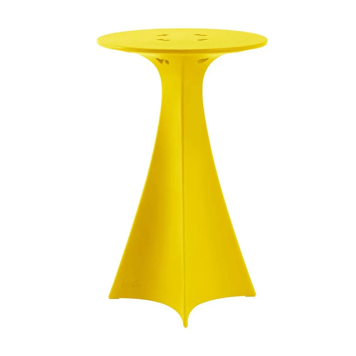 À l’occasion du dixième anniversaire de l’emblématique tabouret Koncord dessiné par Karim Rashid, Slide élargit la collection en lui donnant un partenaire idéal, la table haute Jet, dont la base curviligne accentue la silhouette du tabouret pour se fondre avec elle. Le plateau est orné de symboles historiquement cher au designer. Jet est idéal pour les projets avec un goût original et contemporain.