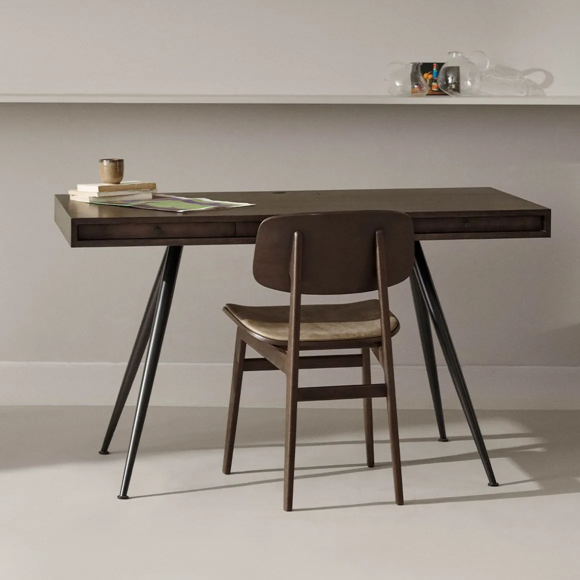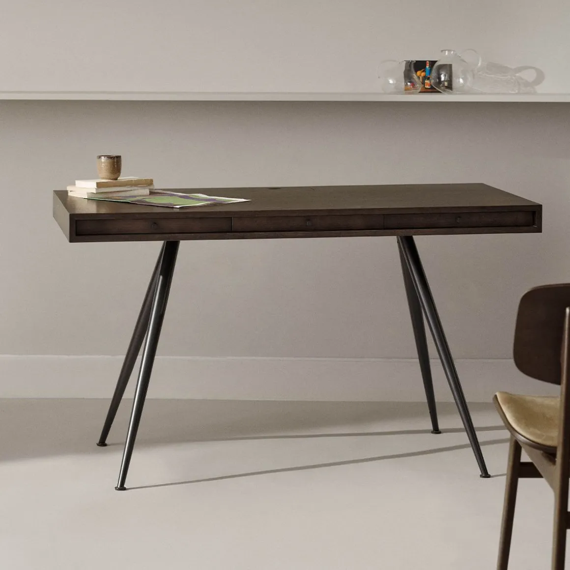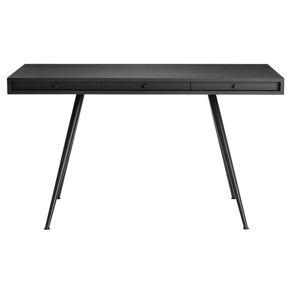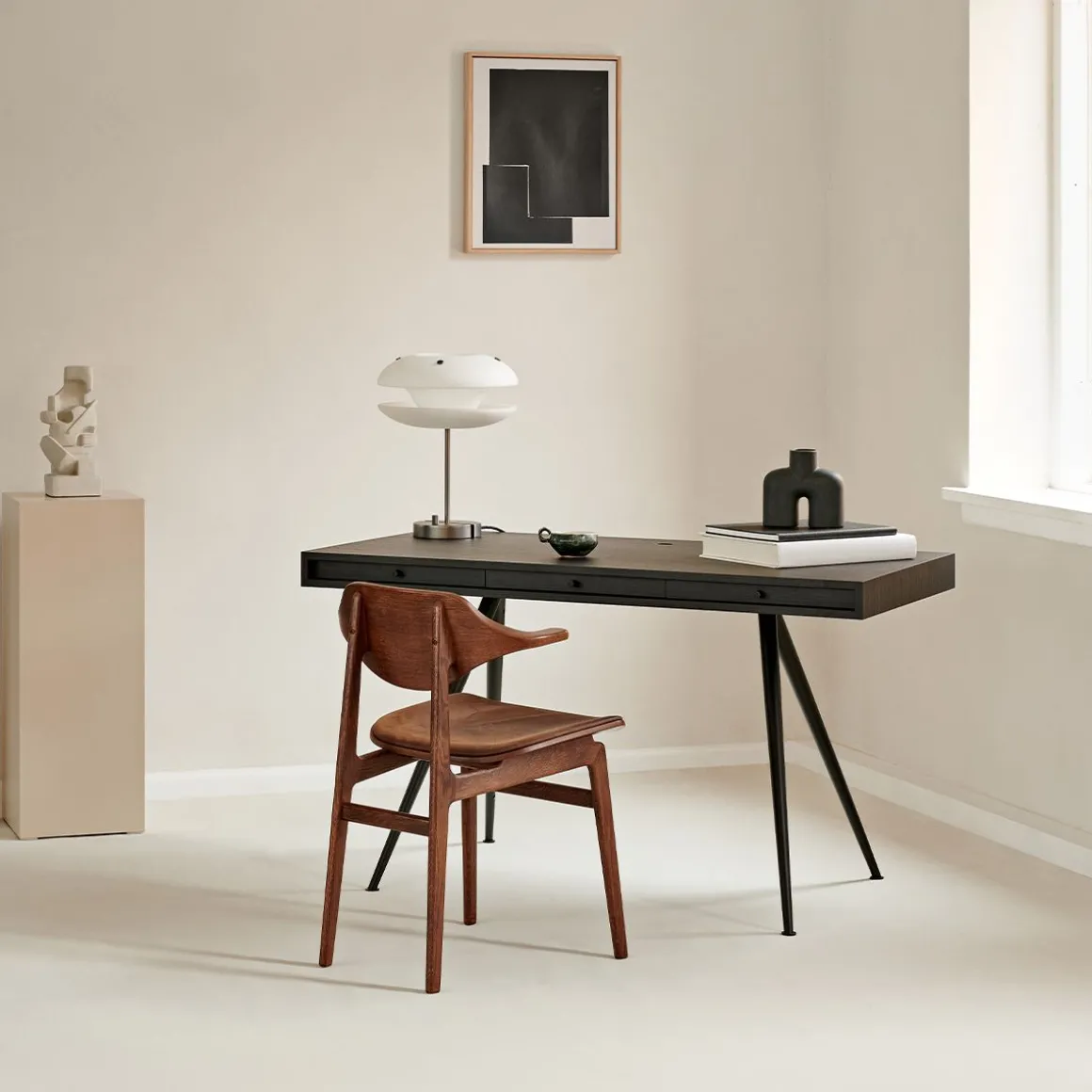 Le compagnon idéal pour le bureau ou le bureau à domicile orienté vers le design. Avec son design pur et simpliste, le bureau JFK, inspiré des années 60, est idéal pour les bureaux orientés design et les bureaux à domicile. Le bureau est doté d’un plateau mince en frêne avec trois tiroirs intégrés et d’un espace caché pour une banque d’alimentation, ce qui facilite l’alimentation d’un ordinateur portable, d’une lampe de table ou d’un smartphone.