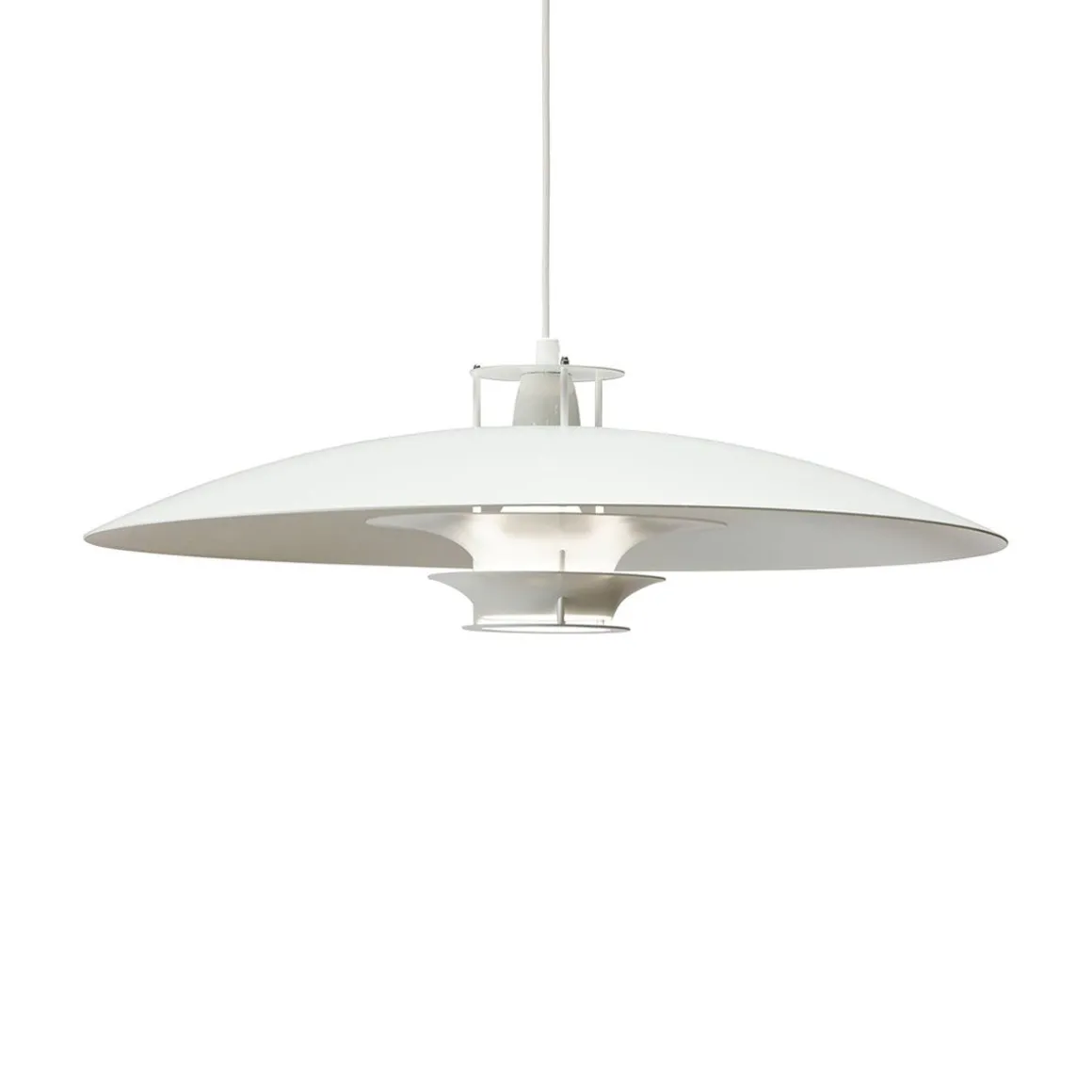 Trouver la beauté dans la simplicité, l’architecte Juha Leiviskä a utilisé l’aluminium blanc léger pour créer cette suspension généreuse. La lumière pend sans effort d’un seul câble blanc, tandis que sa silhouette fine en forme de disque s’illumine d’une lueur éclatante, émettant une lumière délicate et chaude.