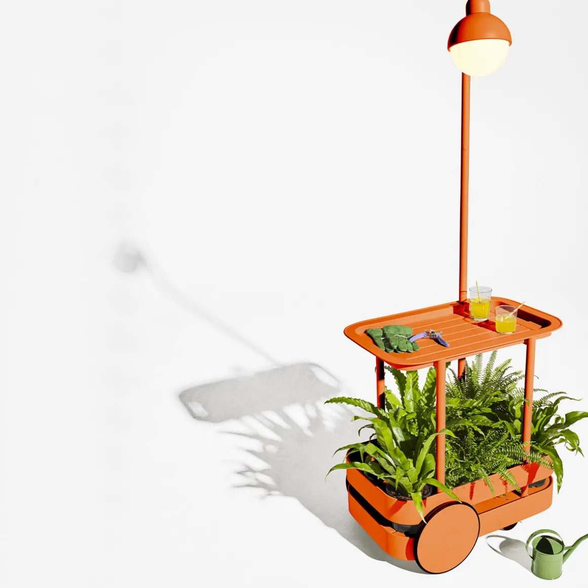 Faites rouler le Jolly Trolley devant vos invités et préparez-leur les cocktails le plus savoureux. Laissez-le vous tenir compagnie sur le balcon, décoré de plantes tout en profitant d’un bon livre. Ce design de fêtes sur roulettes est plein de surprises. Sa partie supérieure, par exemple, se double d’un plateau amovible et ses lumières LED sont réglables. La batterie peut être chargée grâce au port USB-C.