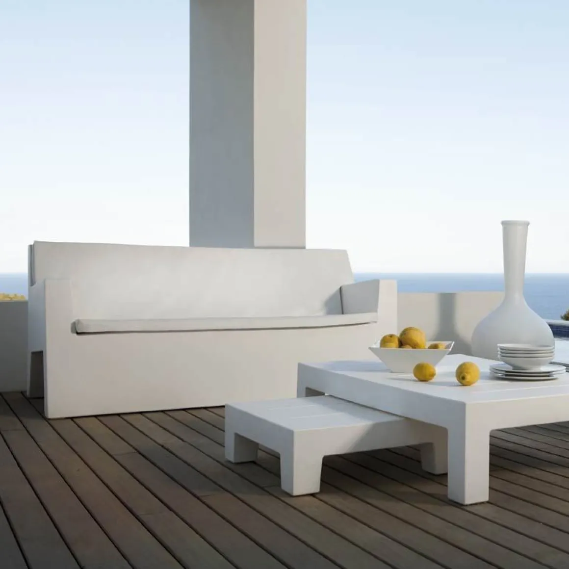 Jut est un canapé dessiné par le Studio Vondom. Ce fauteuil fait partie de la gamme Jut et se combine parfaitement avec le fauteuil ou la table. Fabriqué pour l’extérieur, Jut offre un confort, un moment de détente à l’extérieur. En polyéthylène, il ne craint rien. Apportez une touche design tendance dans votre jardin, votre terrasse !