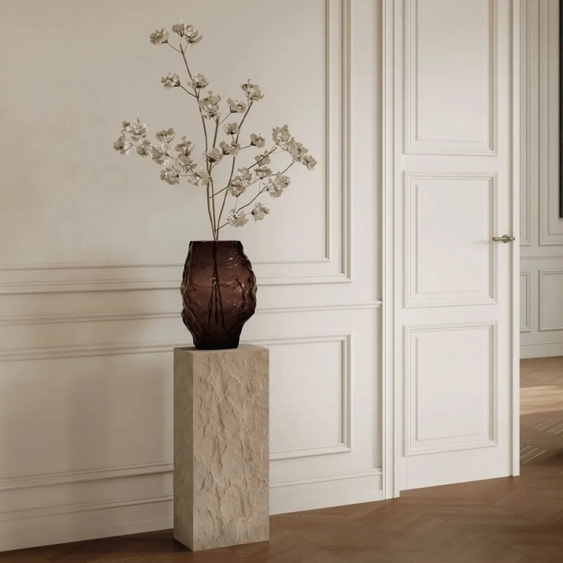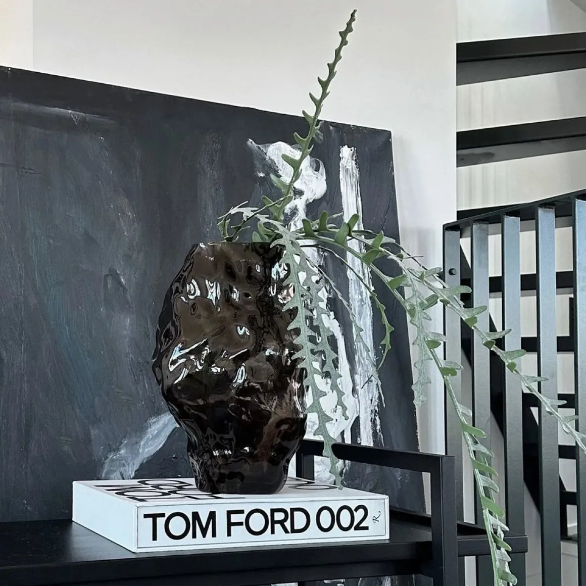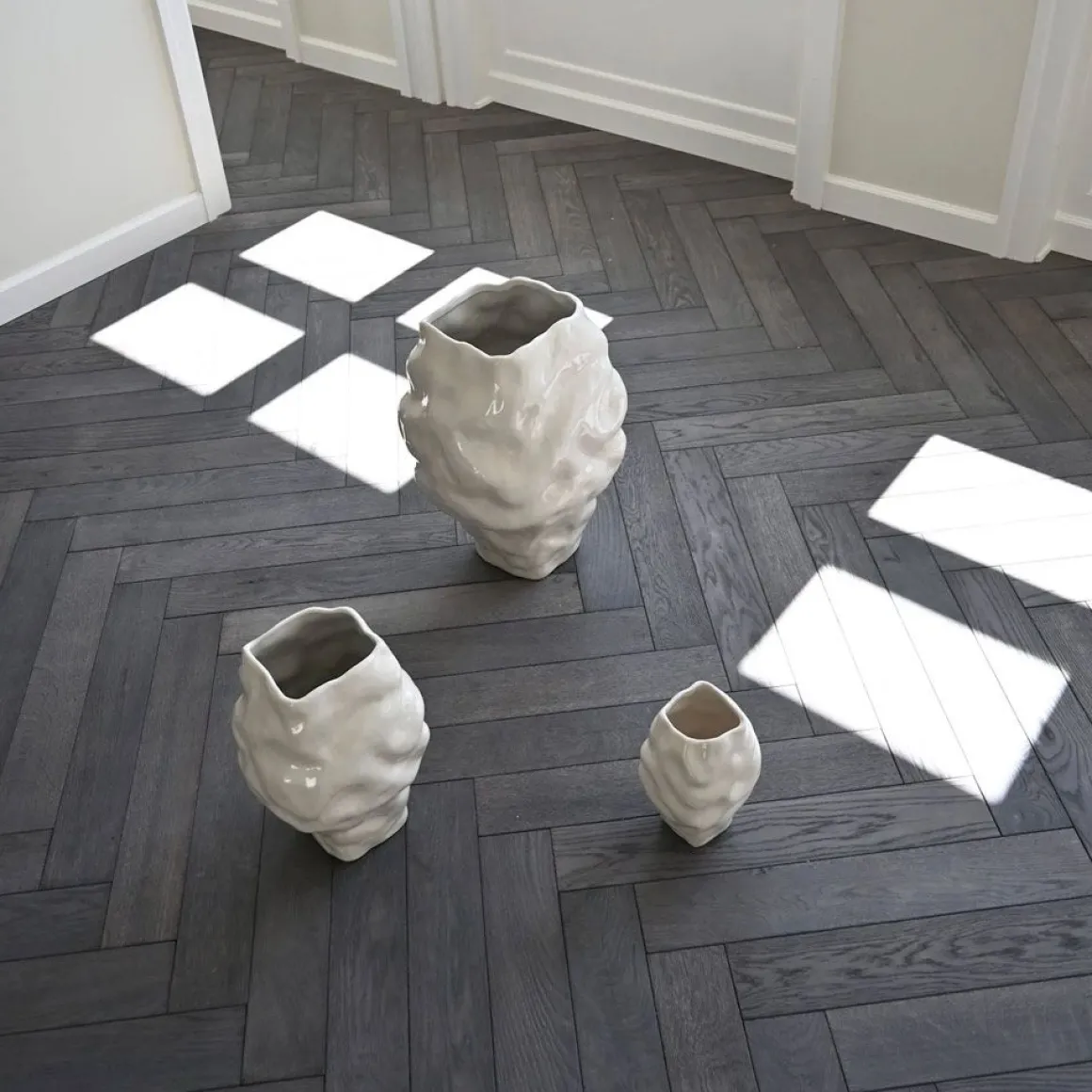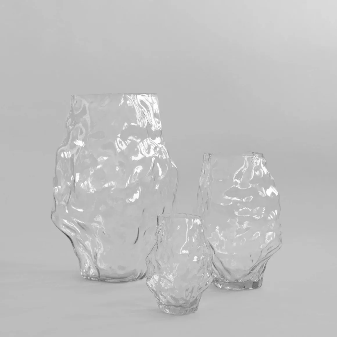 Katachi, qui signifie « forme » en japonais, explore l’équilibre délicat entre lumière, ombre et forme. Fabriqué en verre soufflé bouche, chaque vase présente une surface irrégulière qui déforme et réfracte subtilement la lumière, projetant des reflets changeants et des ombres douces tout au long de la journée. La silhouette sculpturale, à la fois organique et précise, invite au mouvement et à la curiosité visuelle sous tous les angles. Disponibles en deux teintes raffinées – Clair et Forêt Fumée –, les vases offrent des expressions distinctes : l’une aérienne et transparente, l’autre mélancolique et atmosphérique. Proposés en trois tailles harmonieuses, les vases Katachi sont conçus pour être exposés seuls ou en groupe afin de créer une composition architecturale sereine. Qu’ils soient remplis de branches ou vides, ils apportent une touche de poésie et de présence à tout espace.