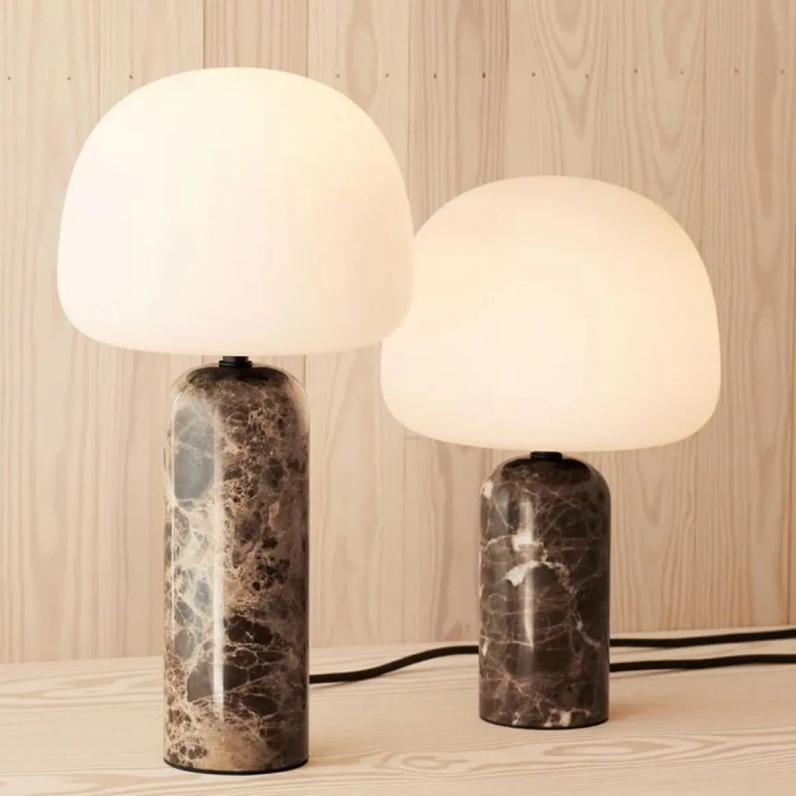 La lampe de table Kin, très attendue, du duo de designers norvégiens Morten & Jonas, est en préparation depuis près d’une décennie. Cette lampe qui fait tourner les têtes s’inspire de la forme des figurines à tête branlante de collection, avec son abat-jour surdimensionné en verre opale mat soufflé à la bouche, posé sans effort sur la base en marbre Emperador poli et légèrement arrondie. Pièce contemporaine et harmonieuse qui allie avec assurance matériaux de qualité et finitions contrastées, la lampe de table Kin se décline en deux tailles audacieuses. Le petit variateur manuel, soigneusement intégré au câble, permet quant à lui d’adoucir l’ambiance en fonction du moment.