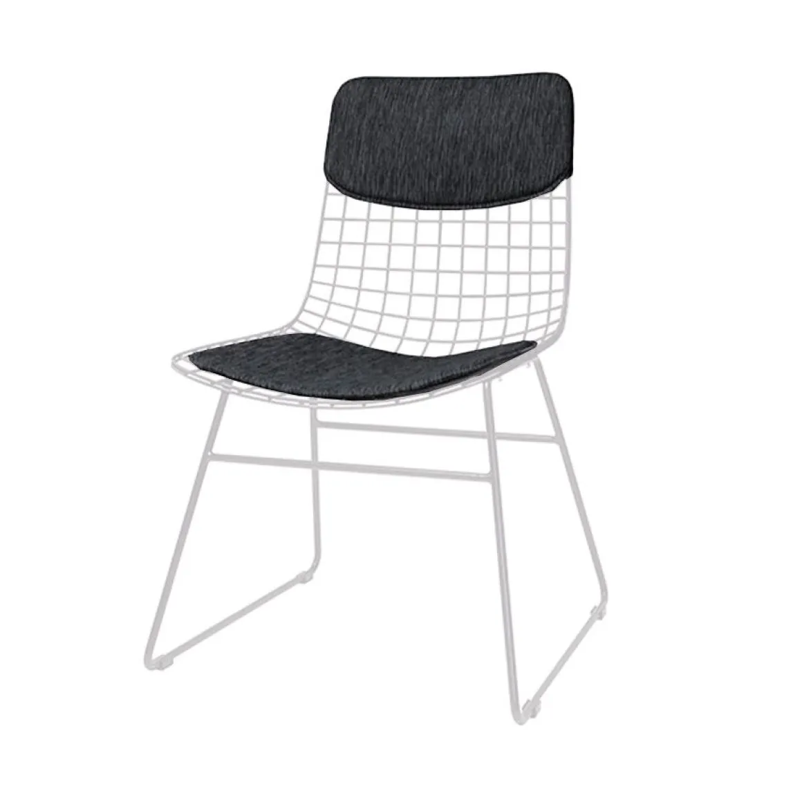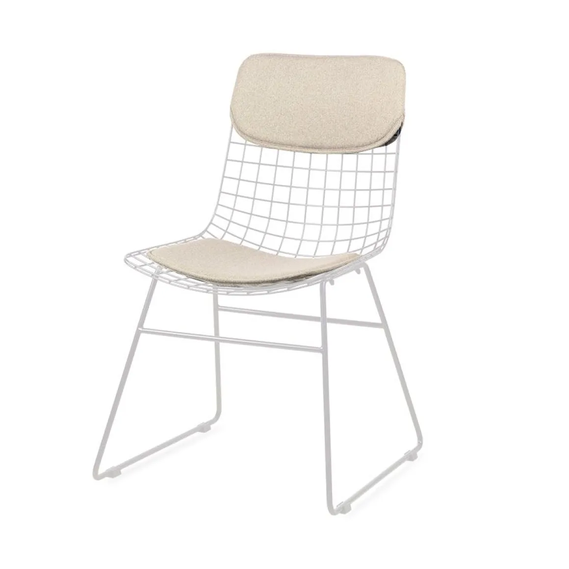 Kit confort pour la chaise en fil. Le kit confort se compose d’un oreiller pour le dossier et le siège. À l’intérieur de l’oreiller, il y a des morceaux de ruban velcro avec lesquels l’oreiller peut être fixé au siège de la chaise.