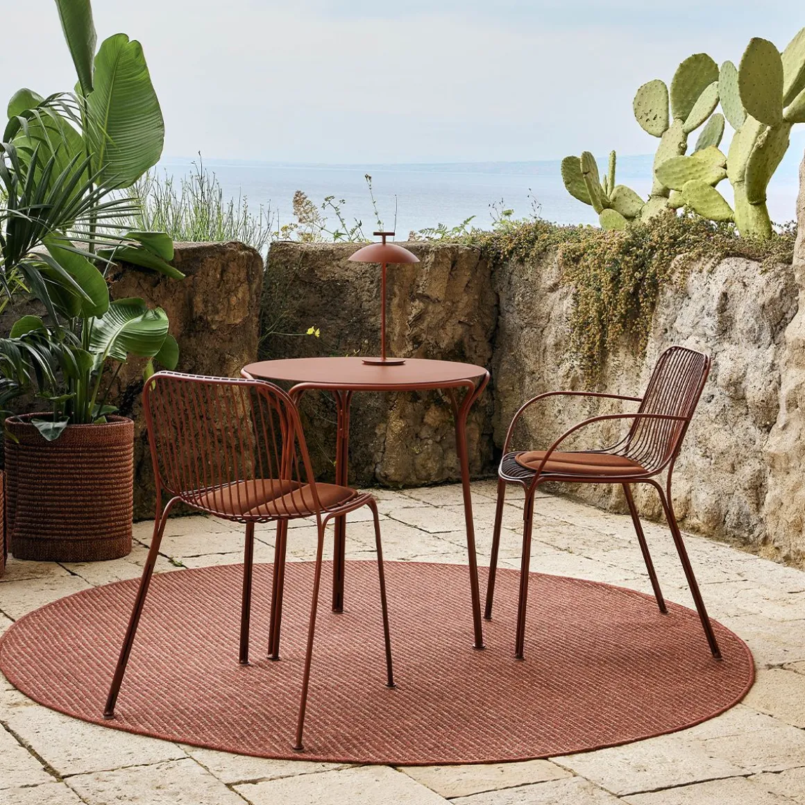 Kleo est le nouveau tapis, conçu par Ludovica+Roberto Palomba, également adapté à un usage extérieur, disponible en 3 tailles, rond, carré et rectangulaire et 3 couleurs. Les tapis s’adaptent à n’importe quel espace de vie et grâce à leurs caractéristiques de résistance au piétinement, ils sont également particulièrement adaptés aux environnements extérieurs tels que les jardins, les terrasses et les bords de piscine. Kleo est fabriqué sur un métier à tisser à main sans support. Facile à laver, drainant, respirant et perméable, donc adapté aux environnements humides. Le tapis peut également être combiné avec un abattant de toilettes dans le même matériau disponible en deux tailles.